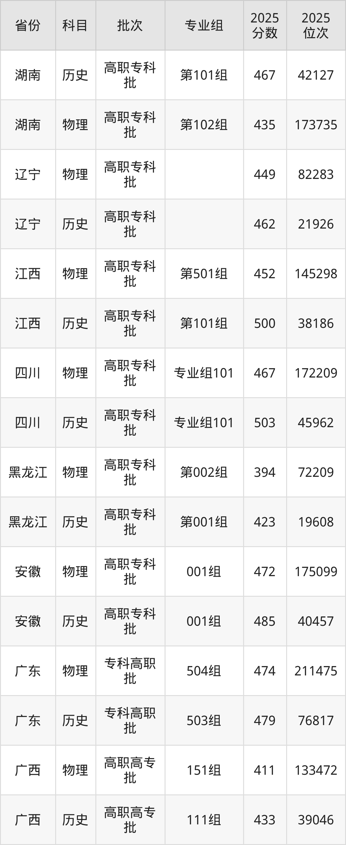 下面是2025年武汉电力职业技术学院全国录取分数线一览表,请查阅。