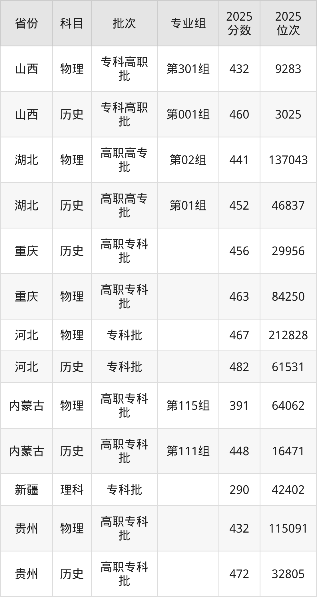 武汉电力职业技术学院第001组:2025年投档录取最低分为460分,录取最低位次为3025名。