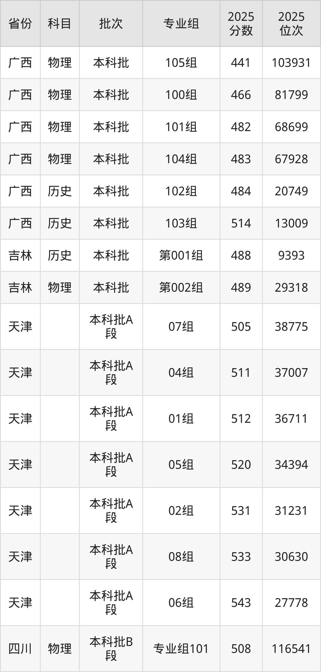 昆明学院专业组101:2025年投档录取最低分为508分,录取最低位次为116541名。