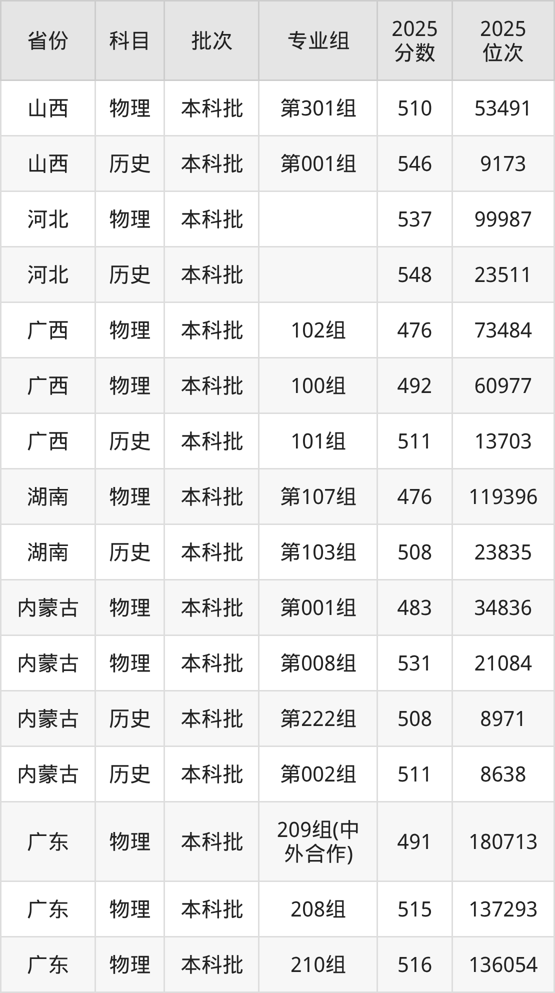 普通类本科物理类最低510分,本科历史类最低546分