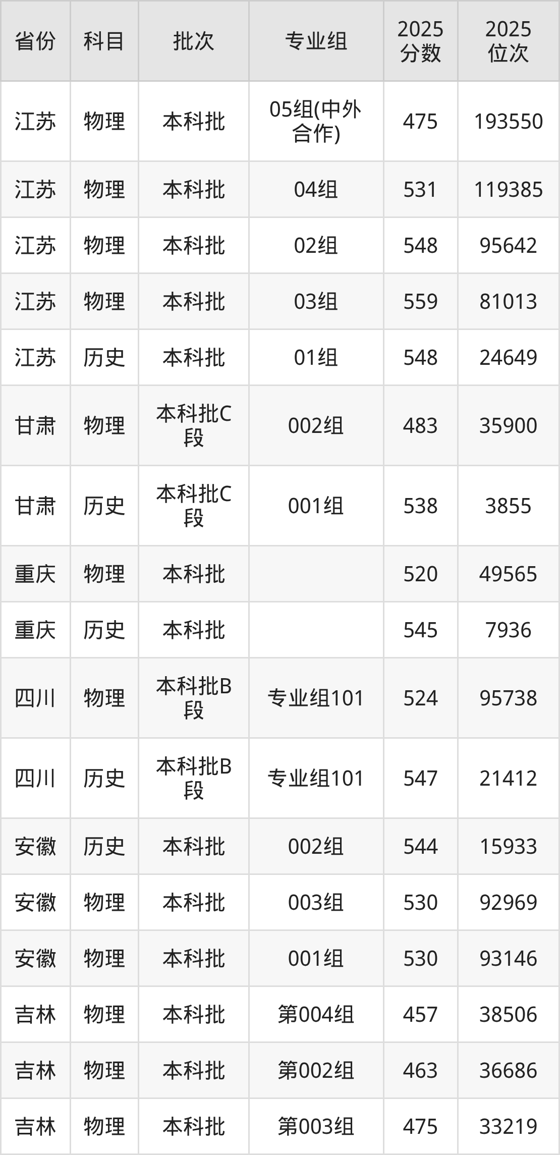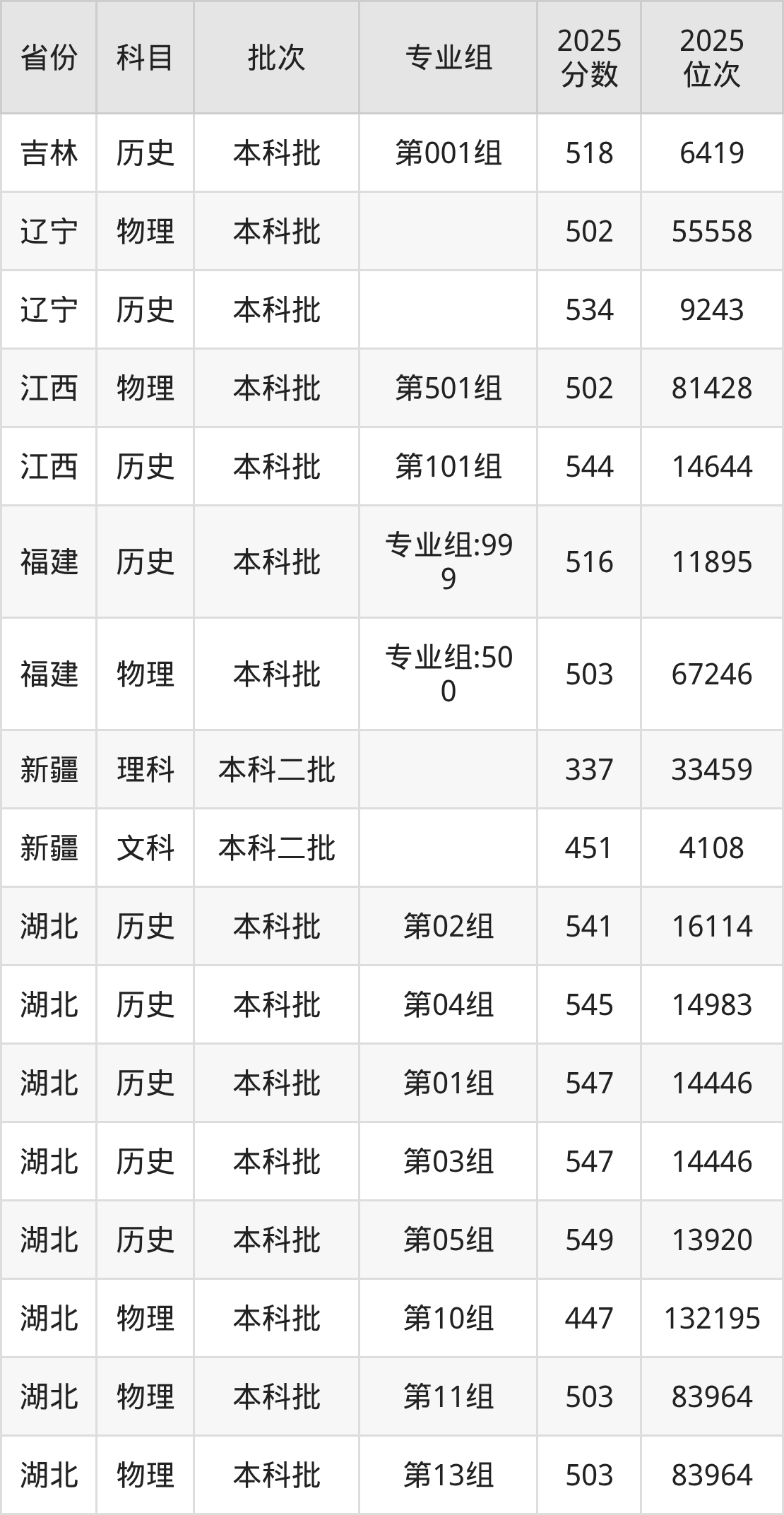 普通类本科物理类最低502分,本科历史类最低544分