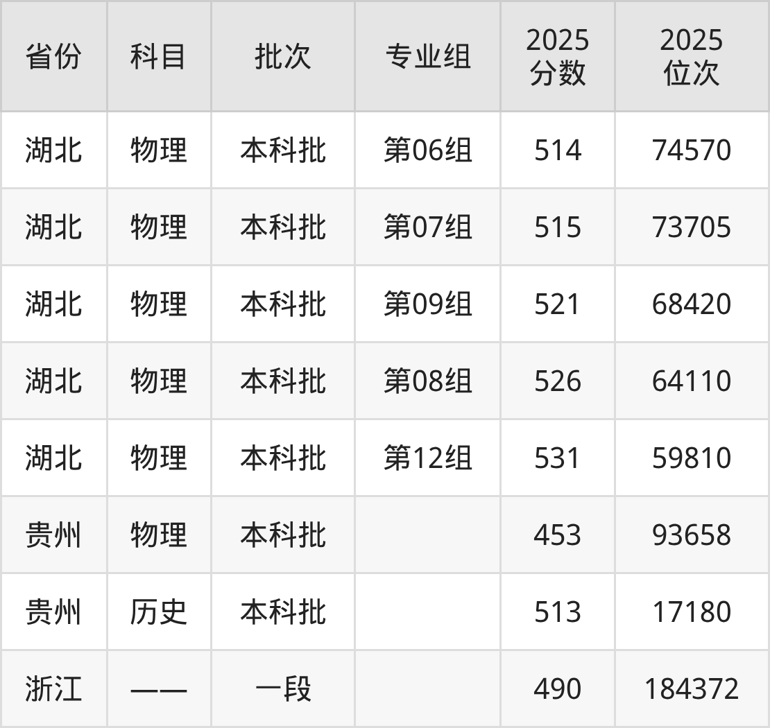2025年投档录取最低分为513分,录取最低位次为17180名。
