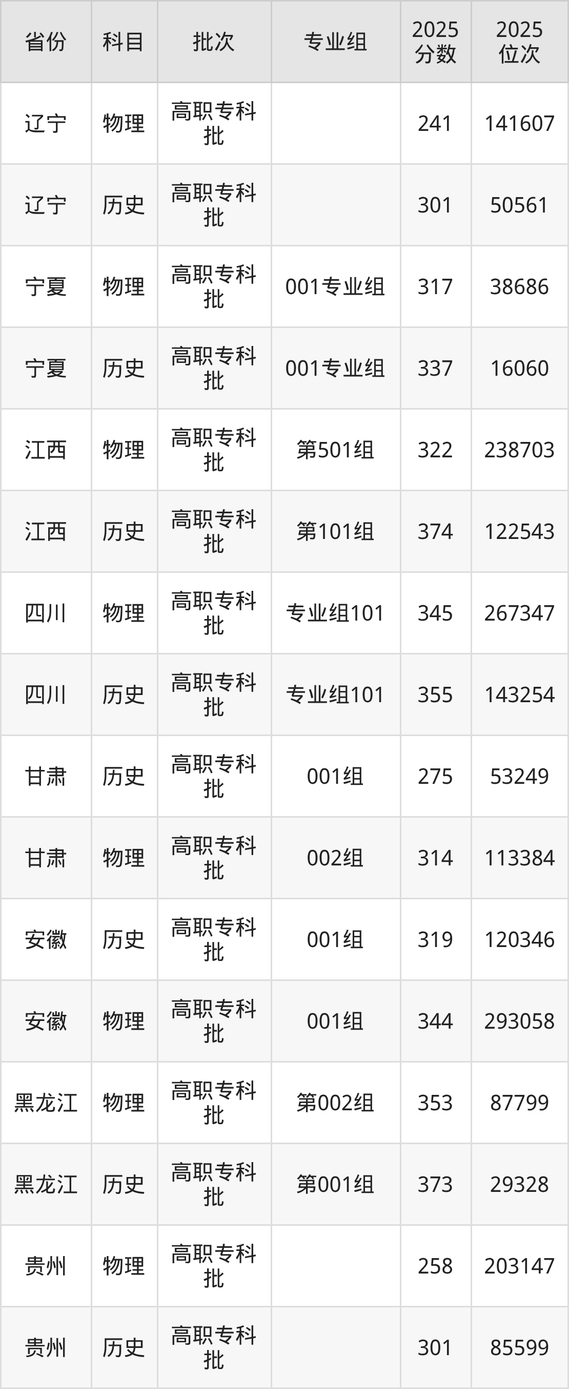 辽宁职业学院001组:2025年投档录取最低分为344分,录取最低位次为293058名。