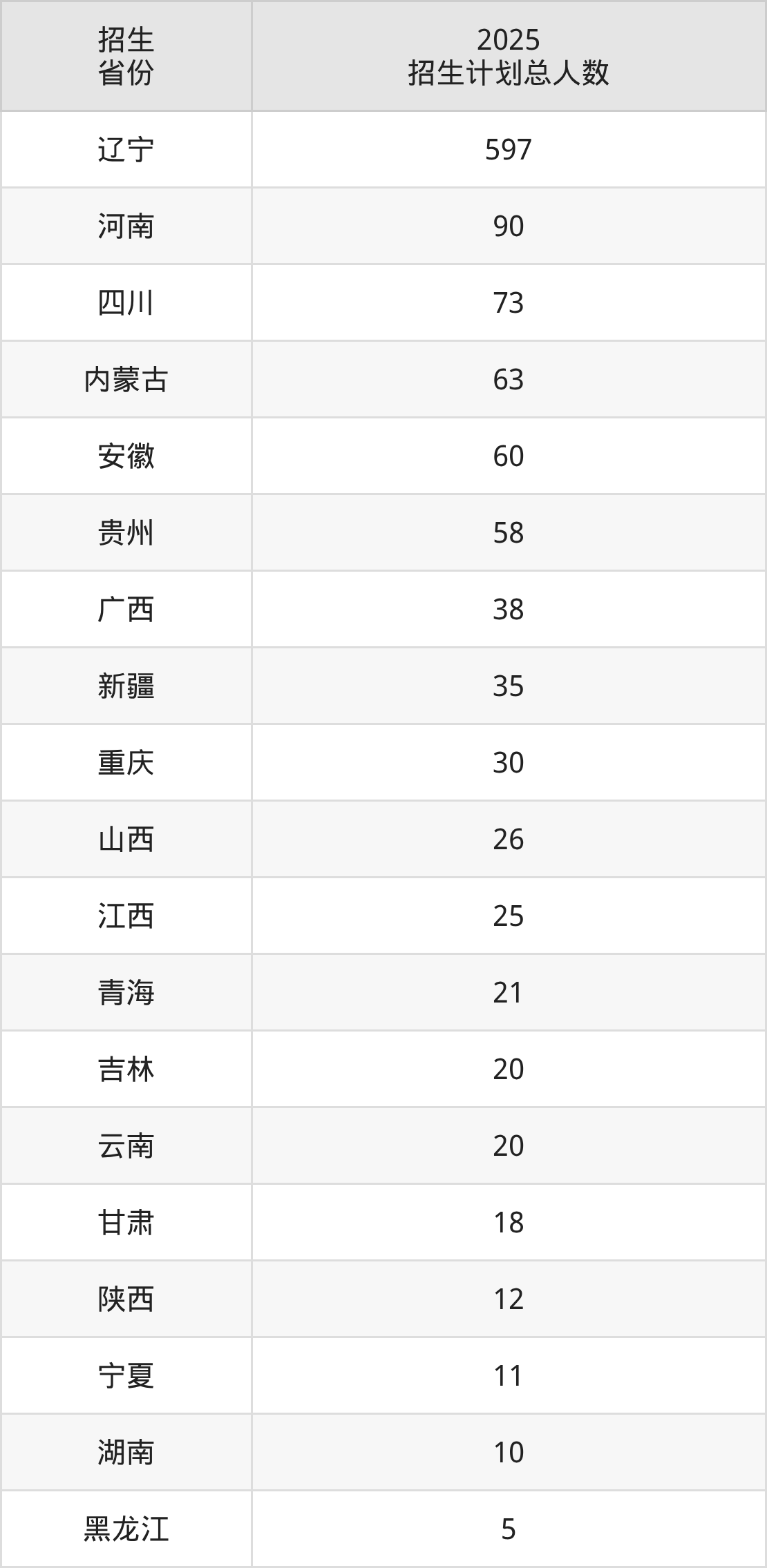 2025年辽宁职业学院面向全国19个省市开展专科招生;招生专业共46个,招生人数共1212人。2025年在辽宁省招生计划总人数是597人,其中,辽宁职业学院在辽宁省招生人数最多的是食品智能加工技术。辽宁职业学院在各省具体招生人数情况如下表。