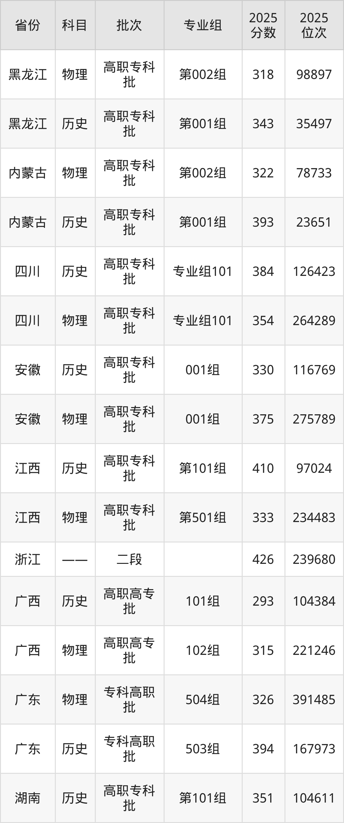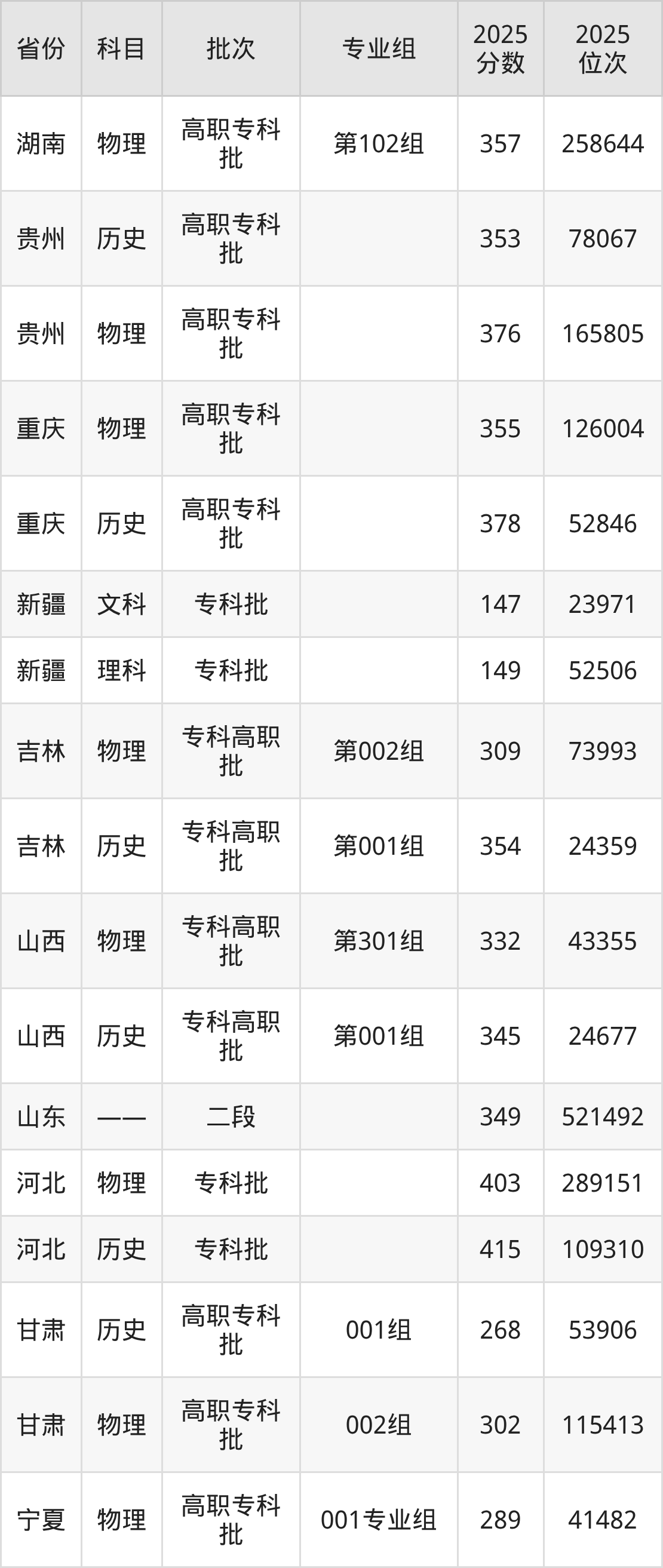下面是2025年青岛酒店管理职业技术学院全国录取分数线一览表,请查阅。