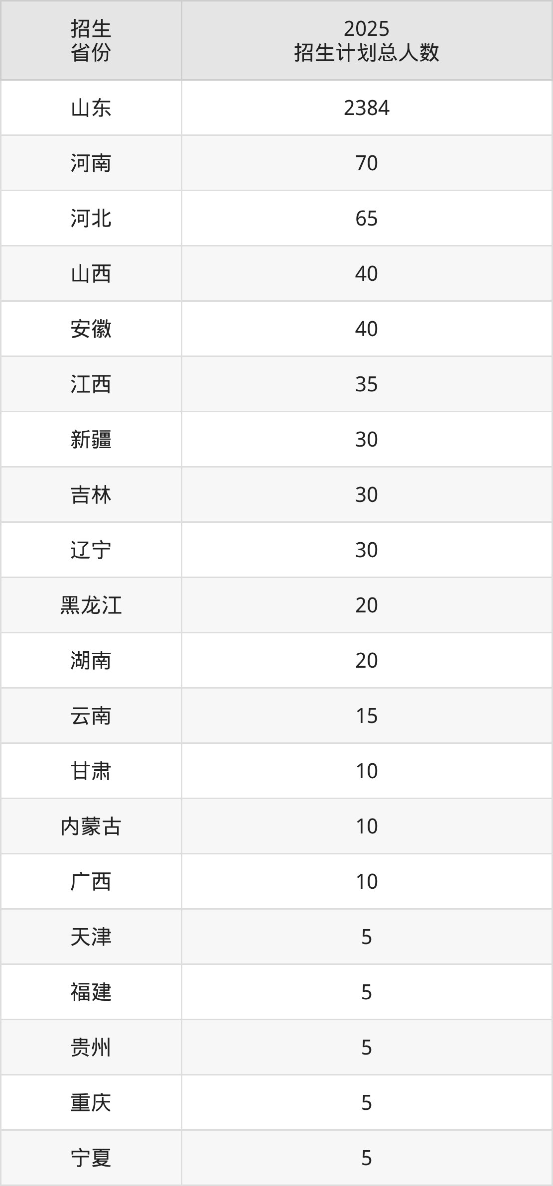 2025年青岛酒店管理职业技术学院面向全国25个省市开展专科招生;招生专业共35个,招生人数共2859人。2025年在山东省招生计划总人数是2384人,其中,青岛酒店管理职业技术学院在山东省招生人数最多的是酒店管理与数字化运营。青岛酒店管理职业技术学院在各省具体招生人数情况如下表。