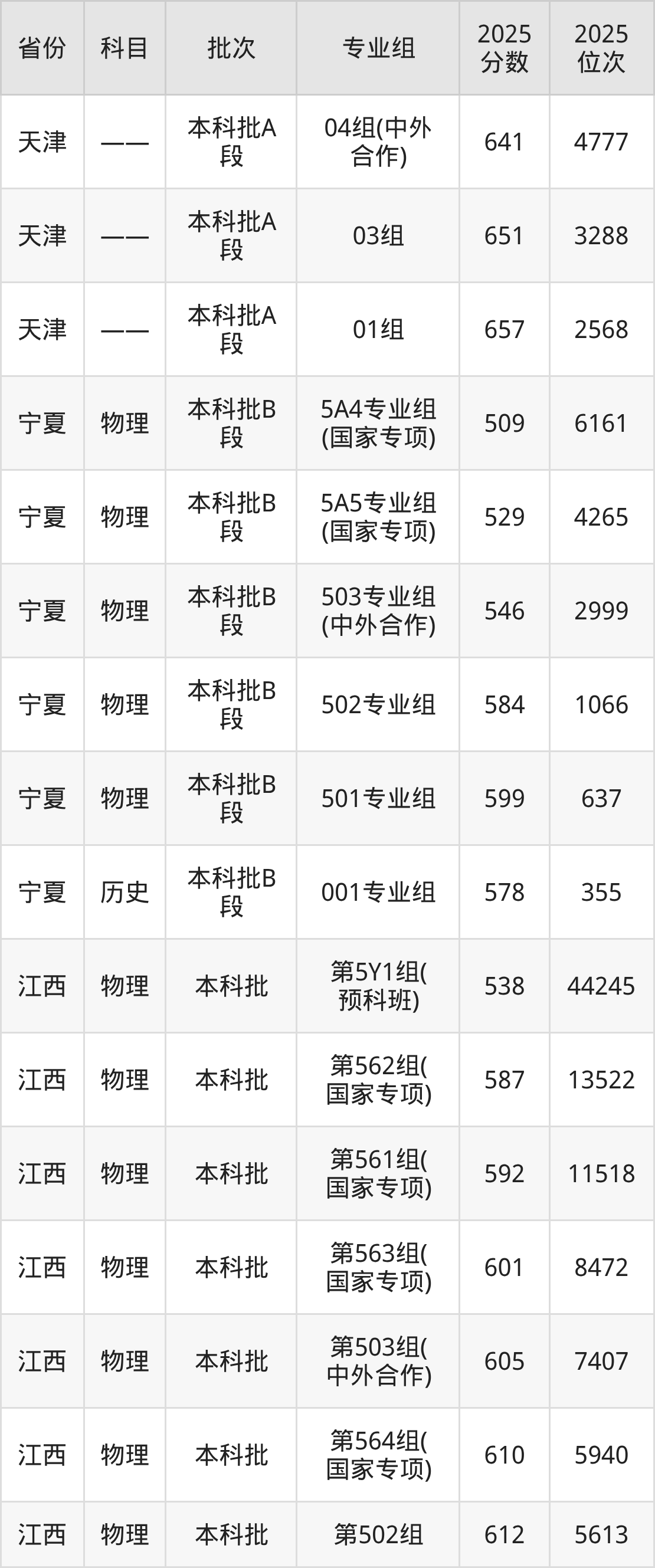 重庆大学第001组:2025年投档录取最低分为617分,录取最低位次为676名。