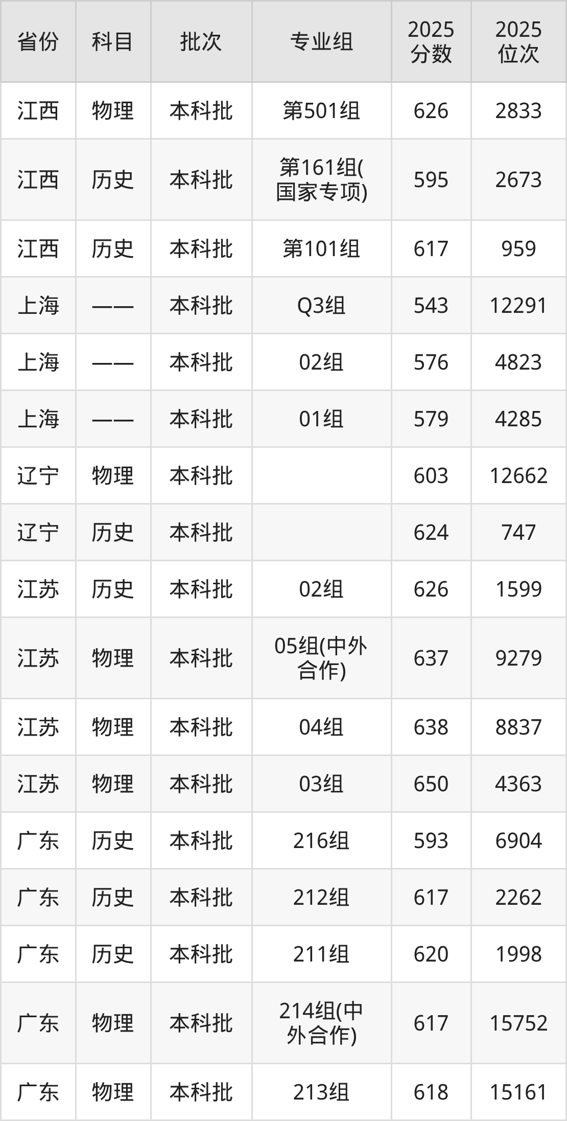 重庆大学002组:2025年投档录取最低分为625分,录取最低位次为1012名。