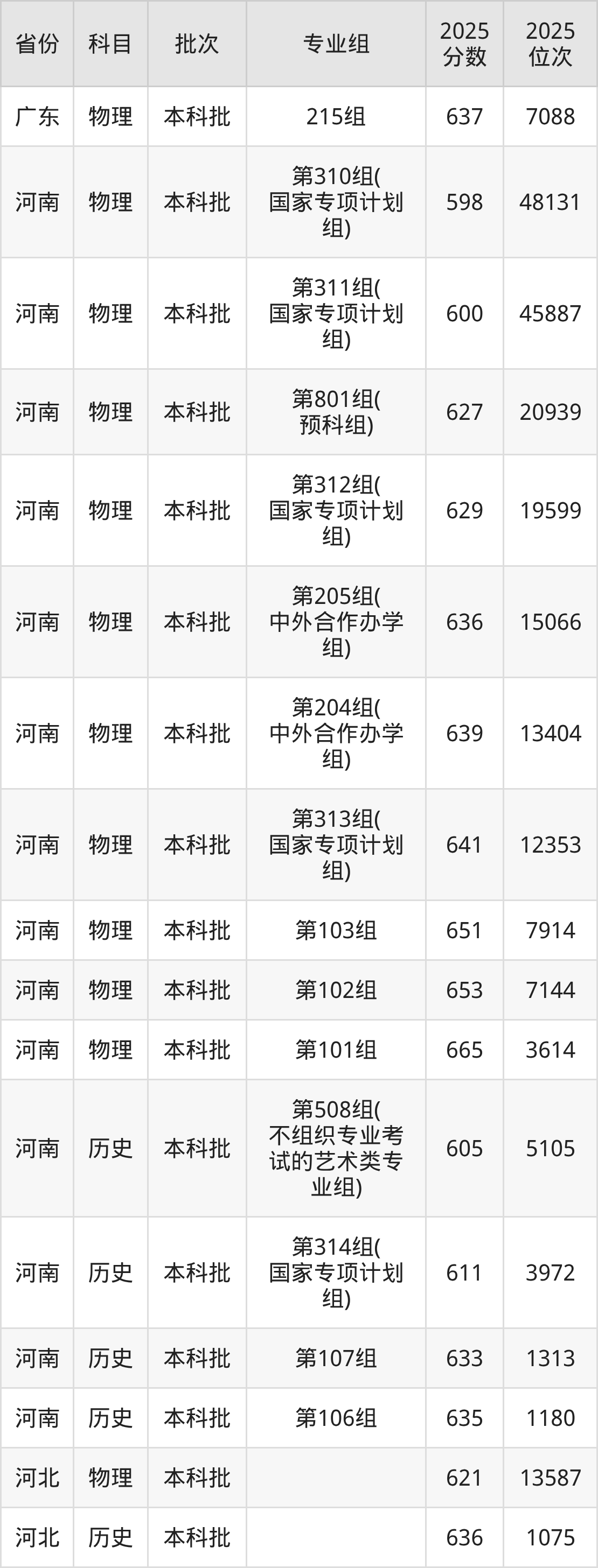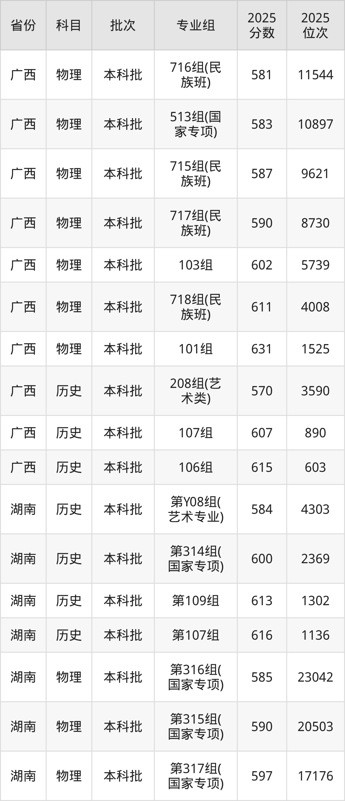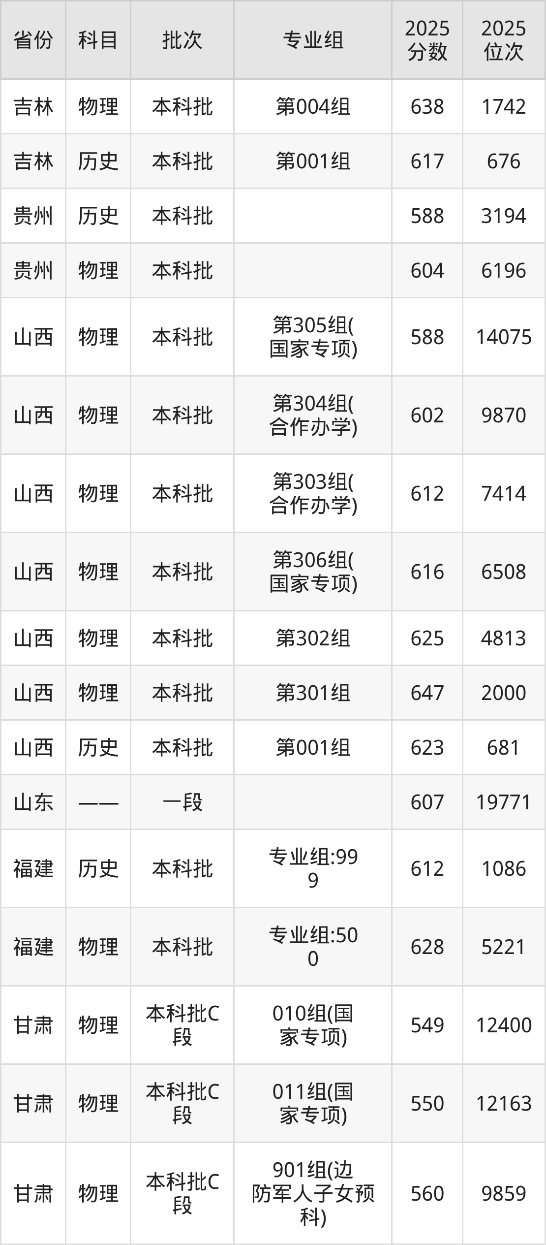 重庆大学第310组(国家专项计划组):2025年投档录取最低分为598分,录取最低位次为48131名。