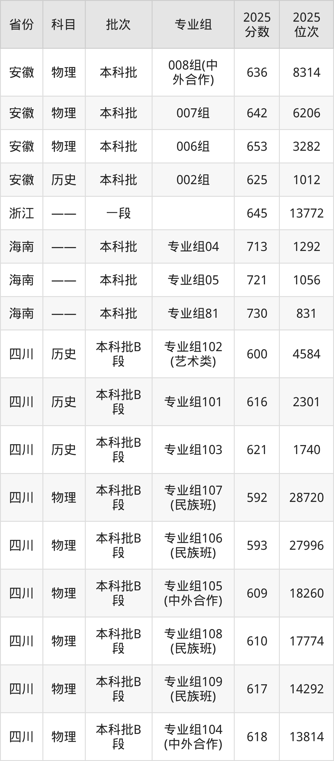 重庆大学008组(中外合作办学):2025年投档录取最低分为636分,录取最低位次为8314名。