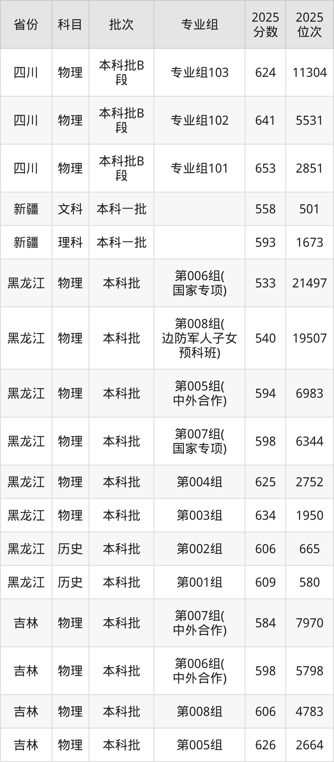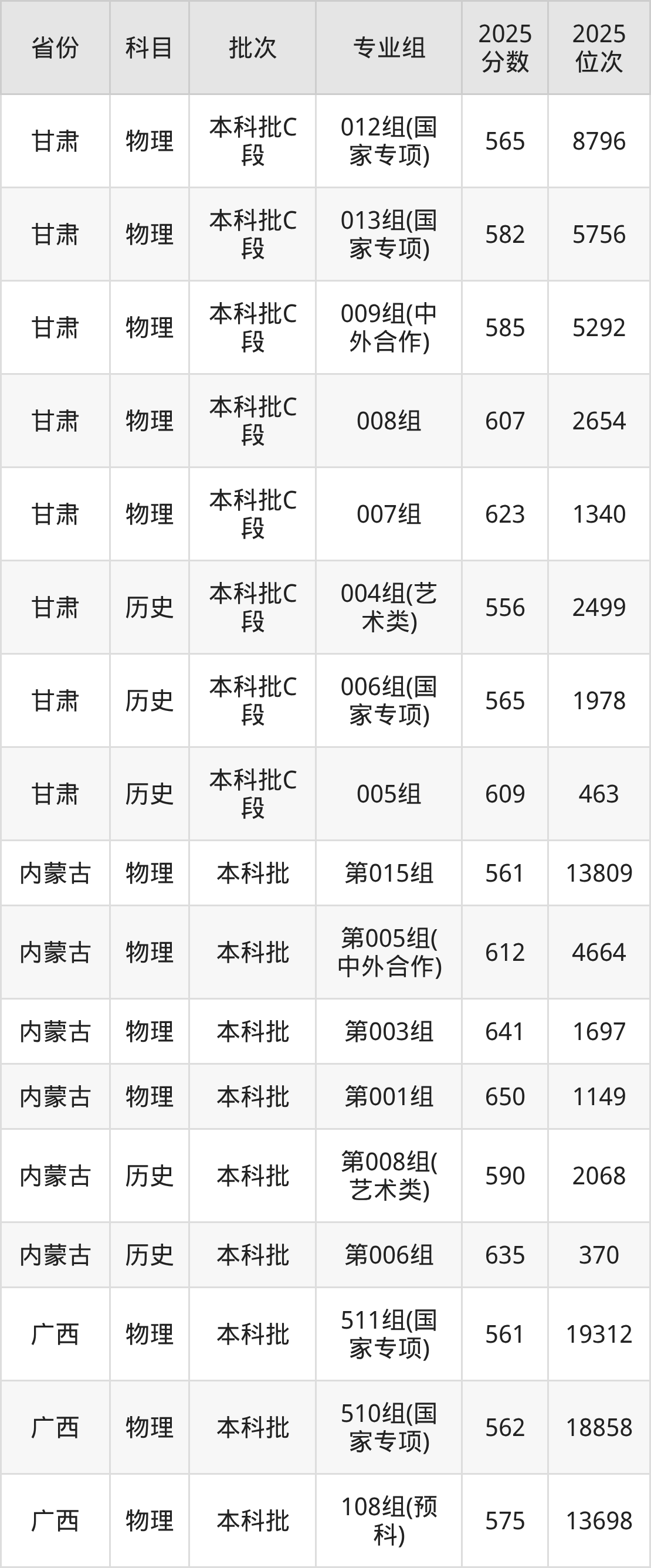 重庆大学第008组(边防军人子女预科班):2025年投档录取最低分为540分,录取最低位次为19507名。