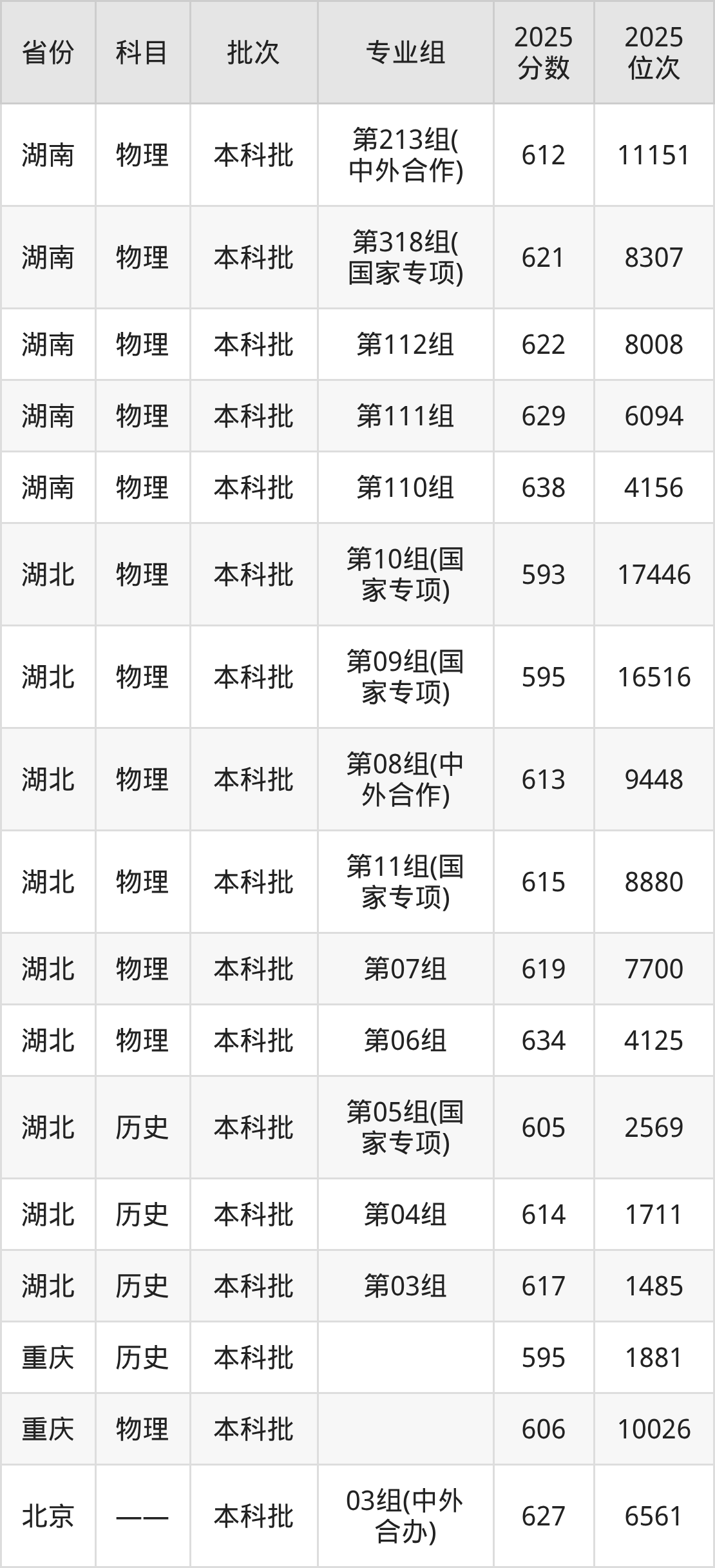 重庆大学第005组(中外合作):2025年投档录取最低分为594分,录取最低位次为6983名。