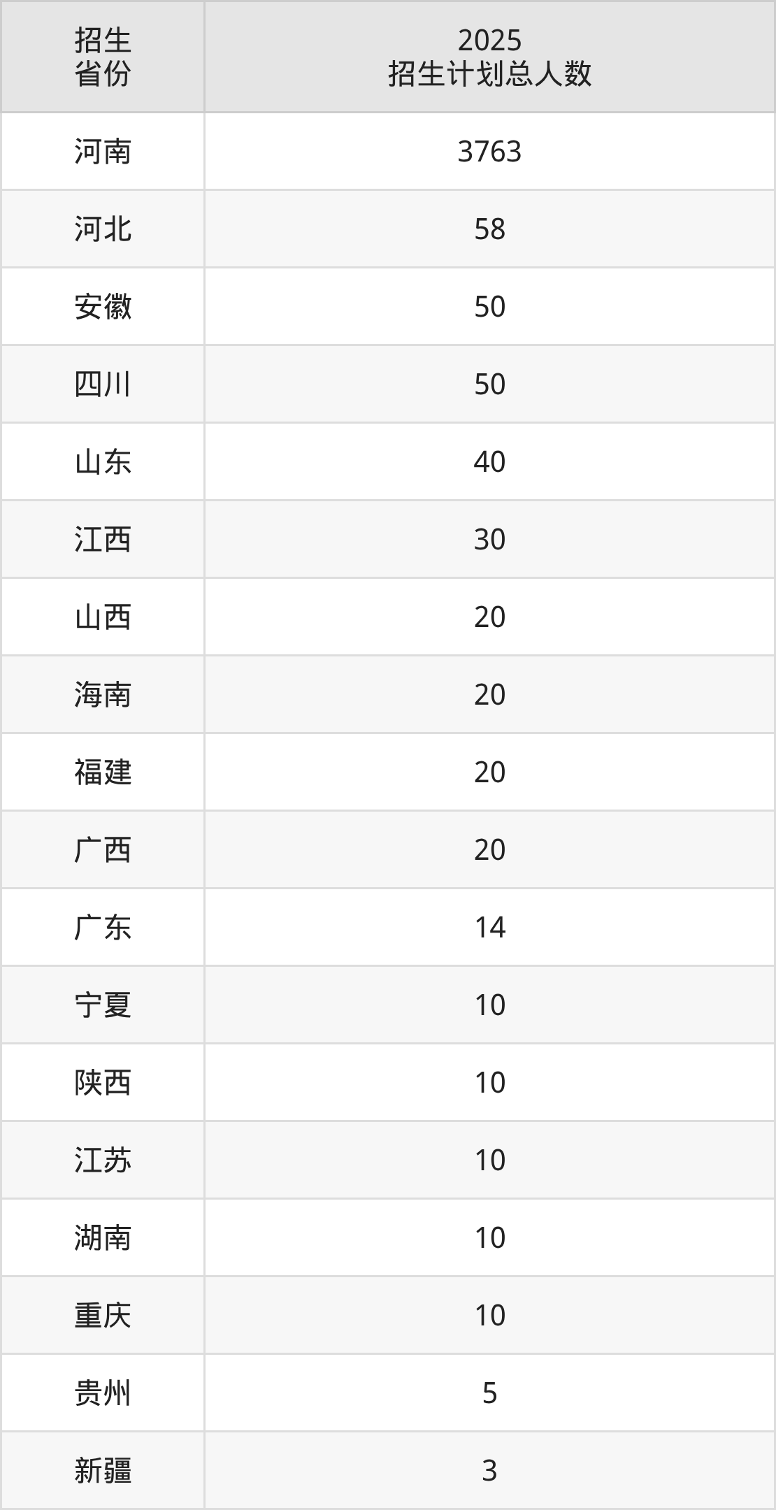 2025年河南工学院面向全国18个省市开展本科招生;招生专业共36个,招生人数共4143人。2025年在河南省招生计划总人数是3763人,其中,河南工学院在河南省招生人数最多的是机械设计制造及其自动化。河南工学院在各省具体招生人数情况如下表。