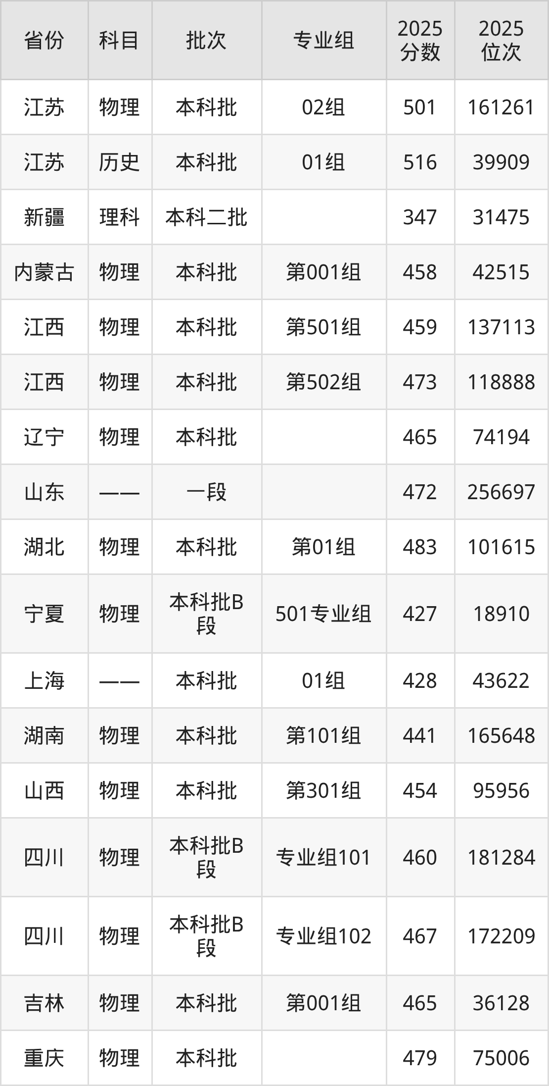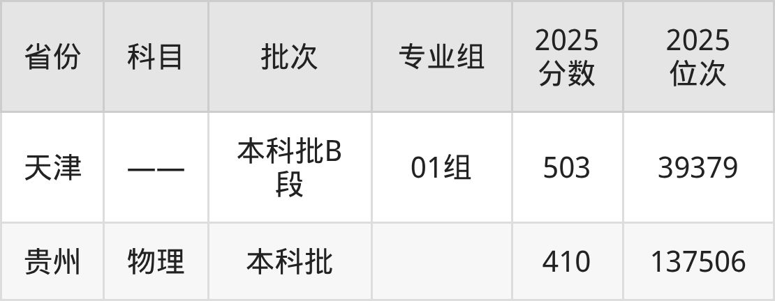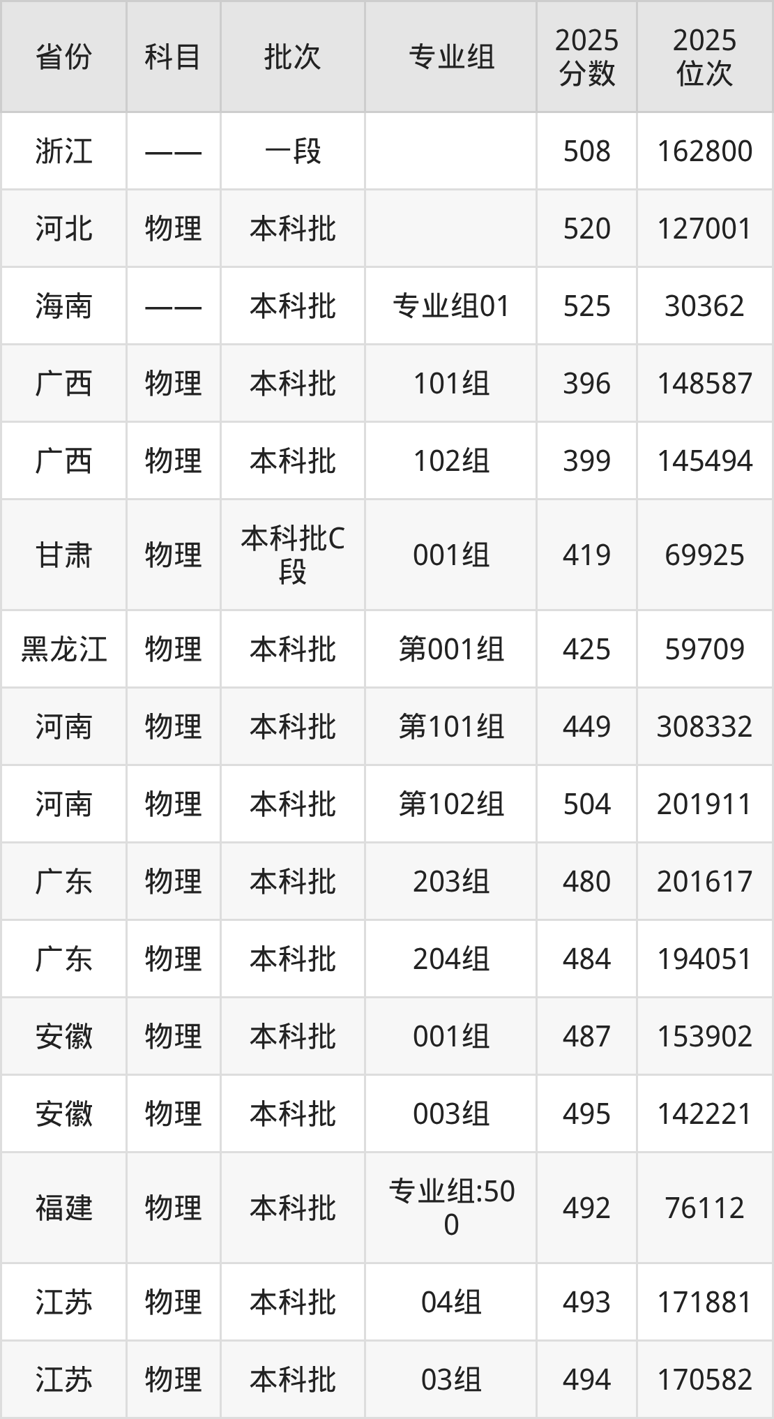 2025年在本科物理类进行招生,各专业组分数线详情如下:
