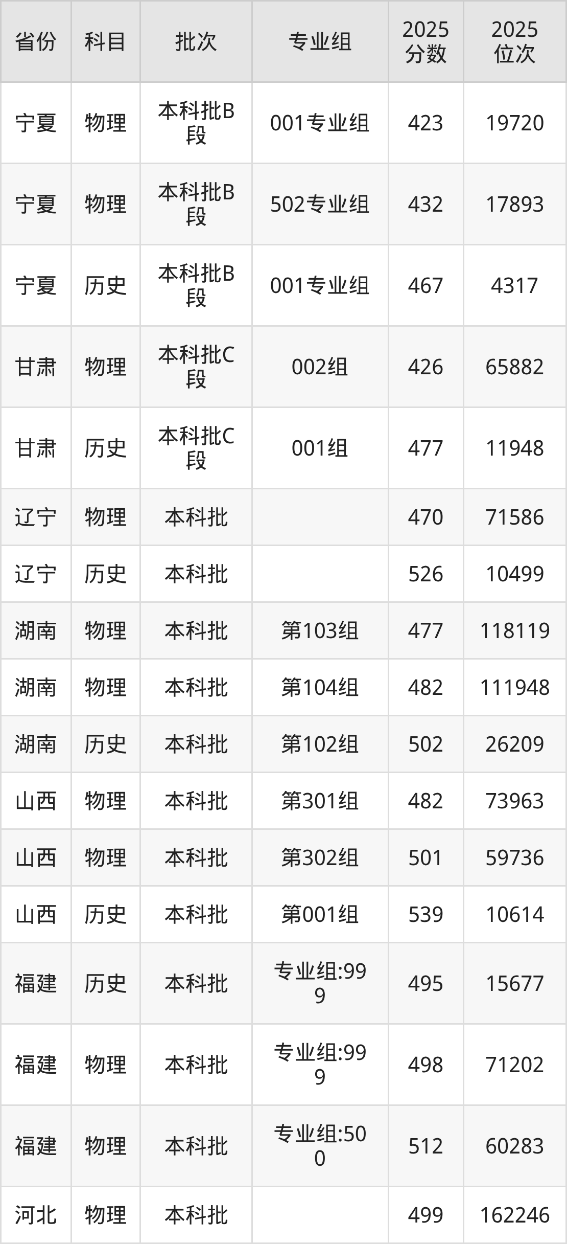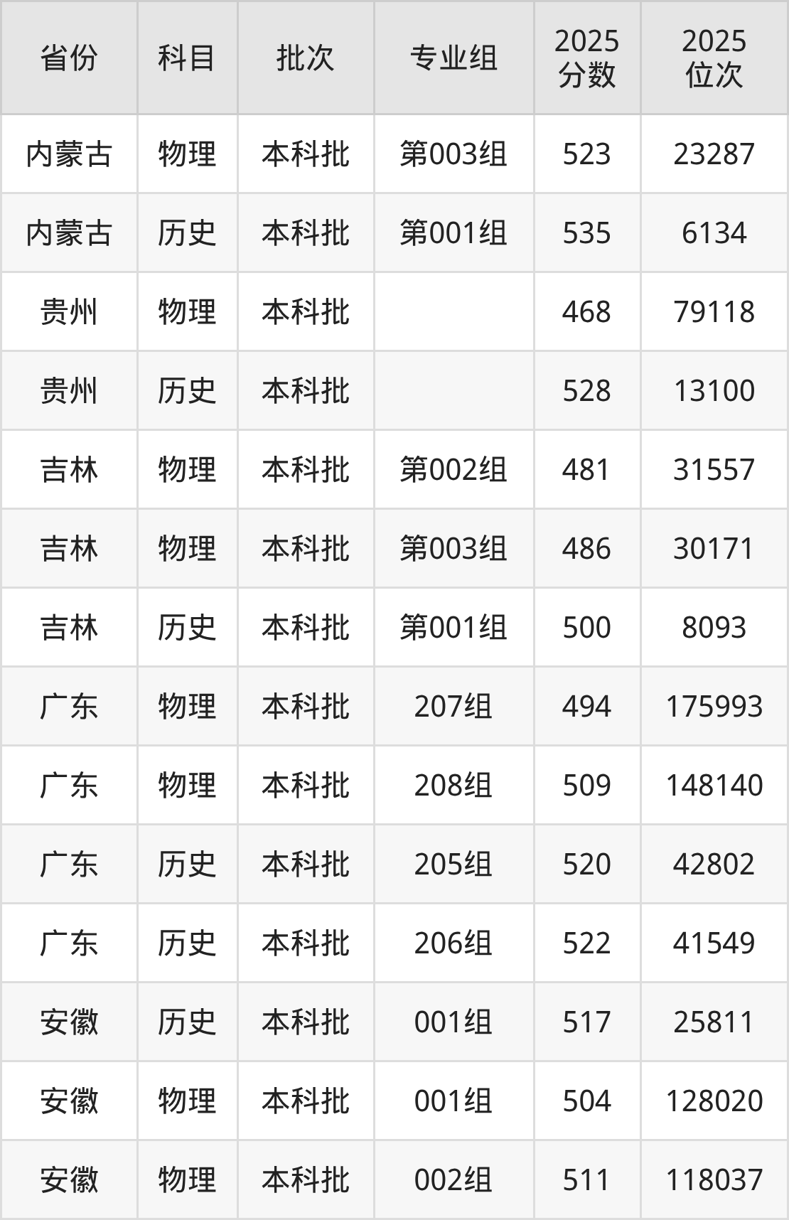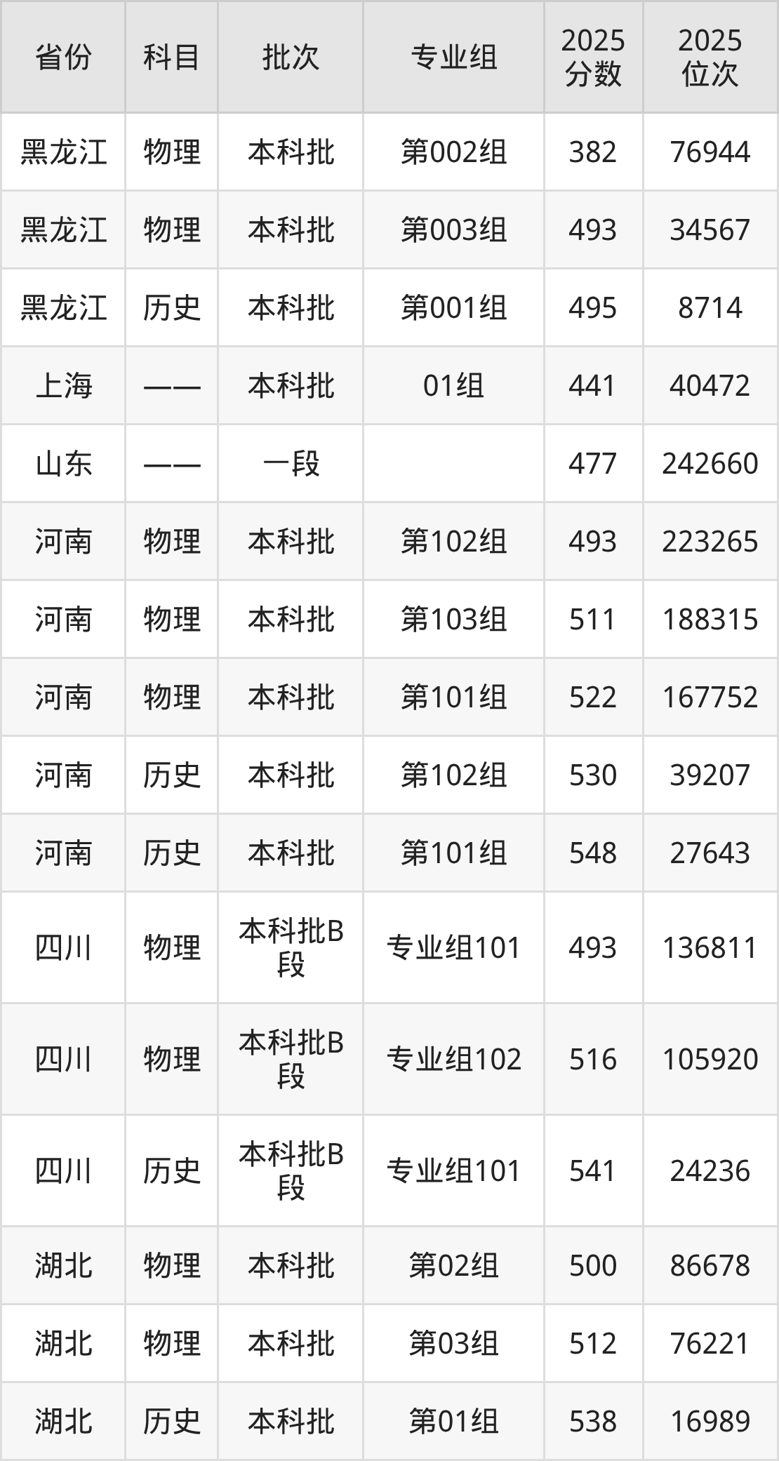 普通类本科物理类最低493分,本科历史类最低541分