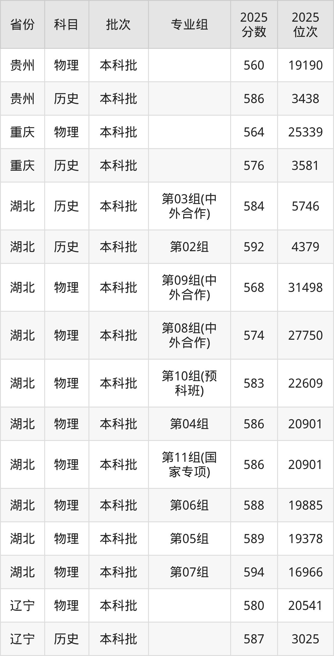 华中农业大学第002组:2025年投档录取最低分为563分,录取最低位次为13388名。