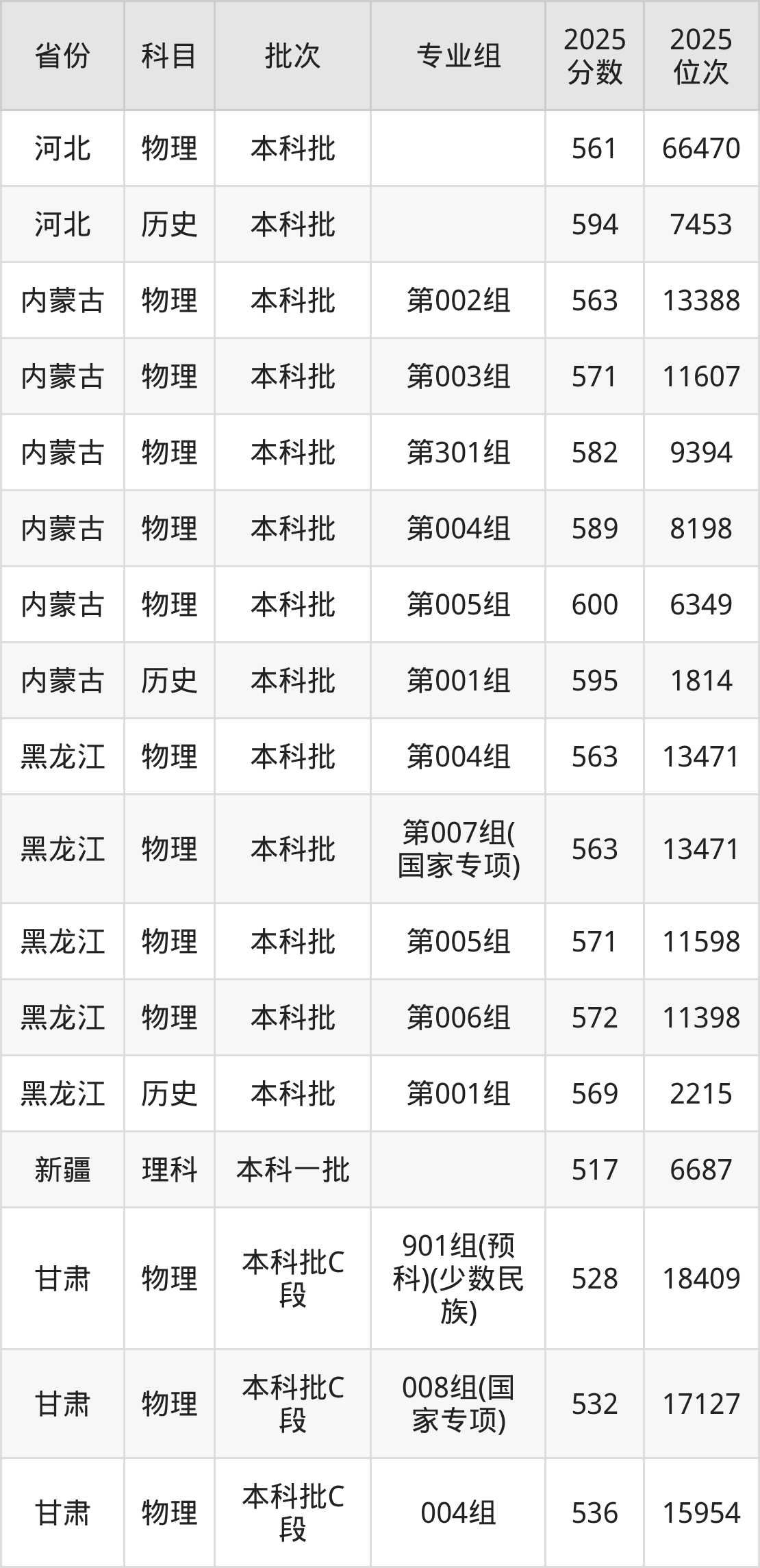 华中农业大学第003组:2025年投档录取最低分为549分,录取最低位次为14551名。