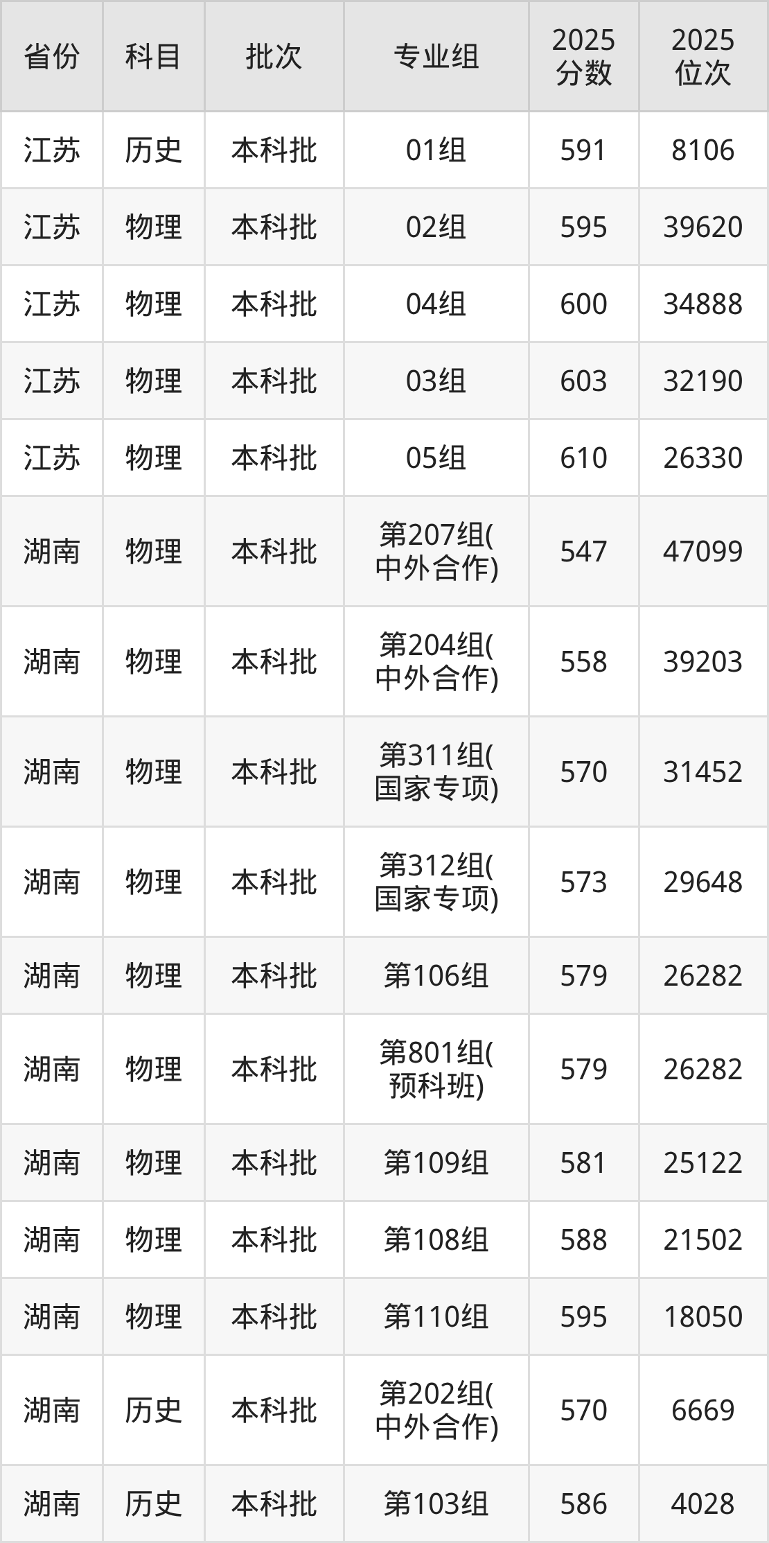 华中农业大学第001组:2025年投档录取最低分为595分,录取最低位次为1814名。