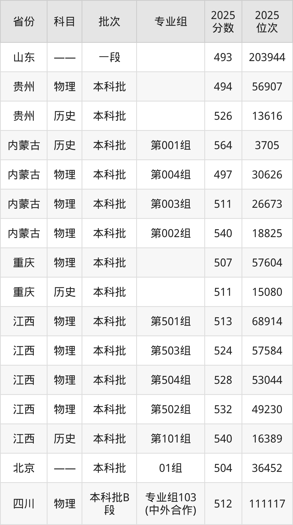 一段:2025年投档录取最低分为493分。