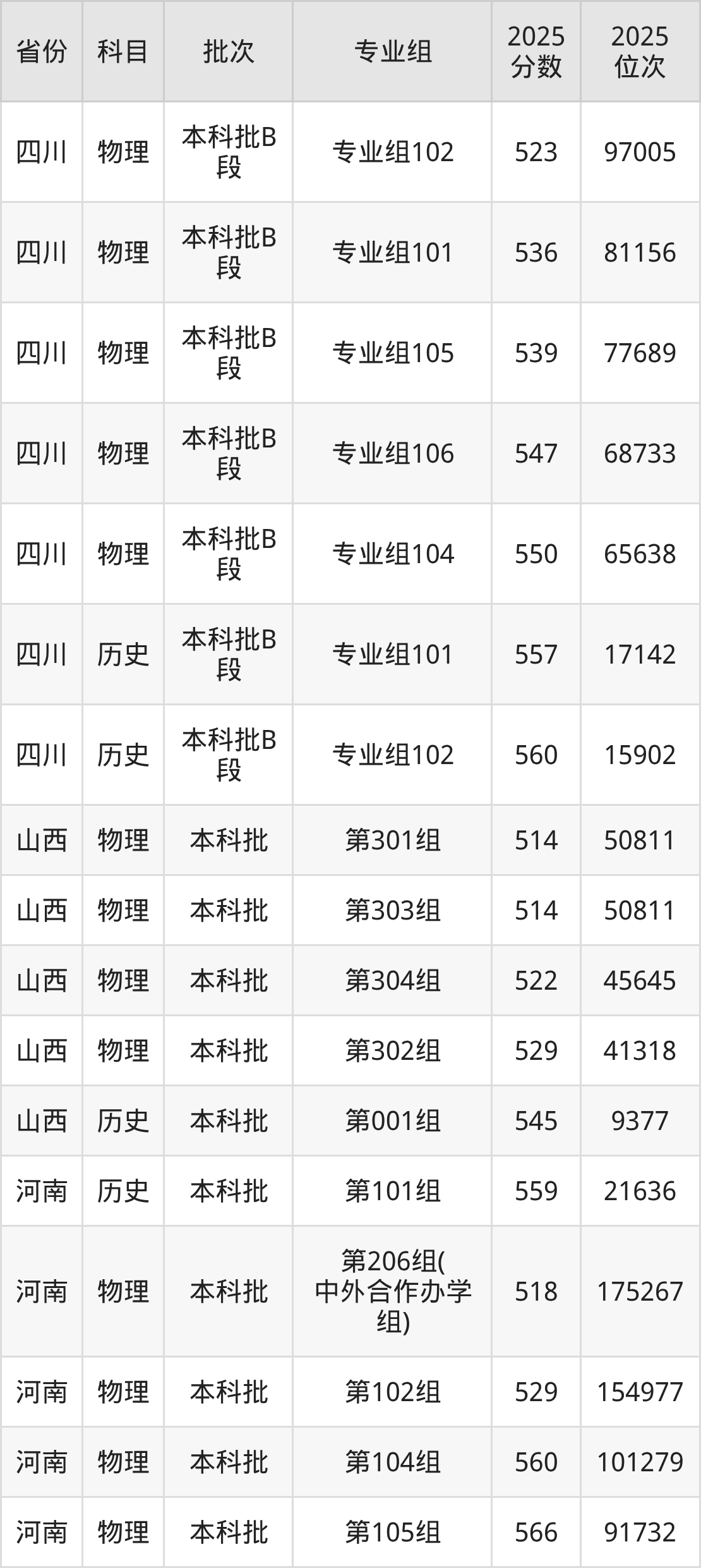 重庆科技大学专业组102:2025年投档录取最低分为523分,录取最低位次为97005名。