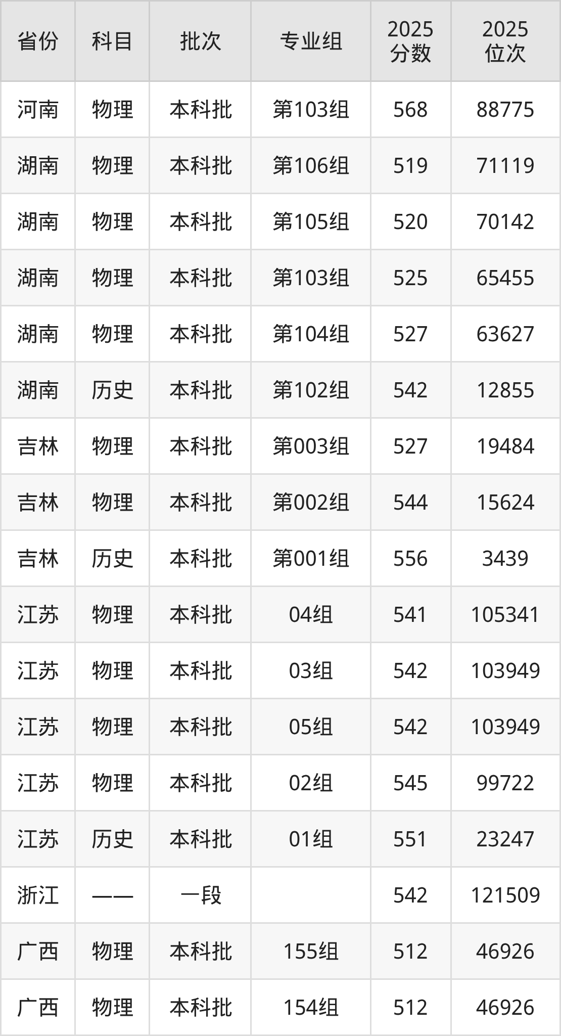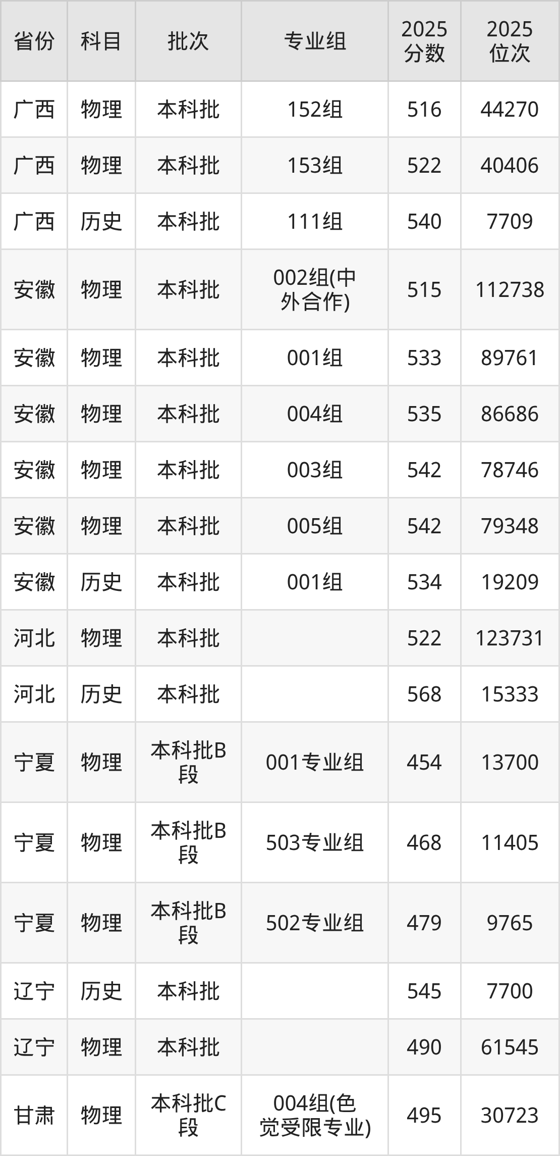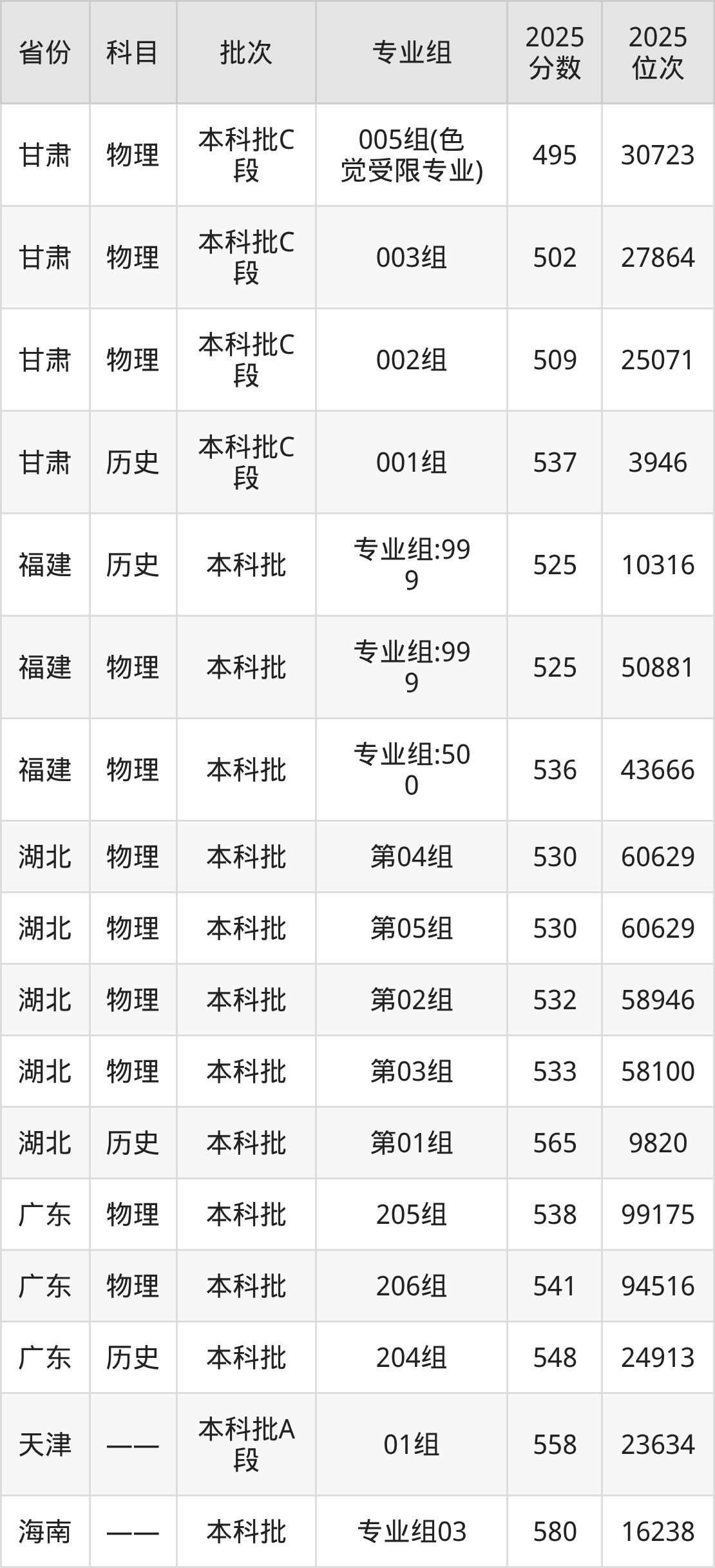 普通类本科历史类最低545分,本科物理类最低514分