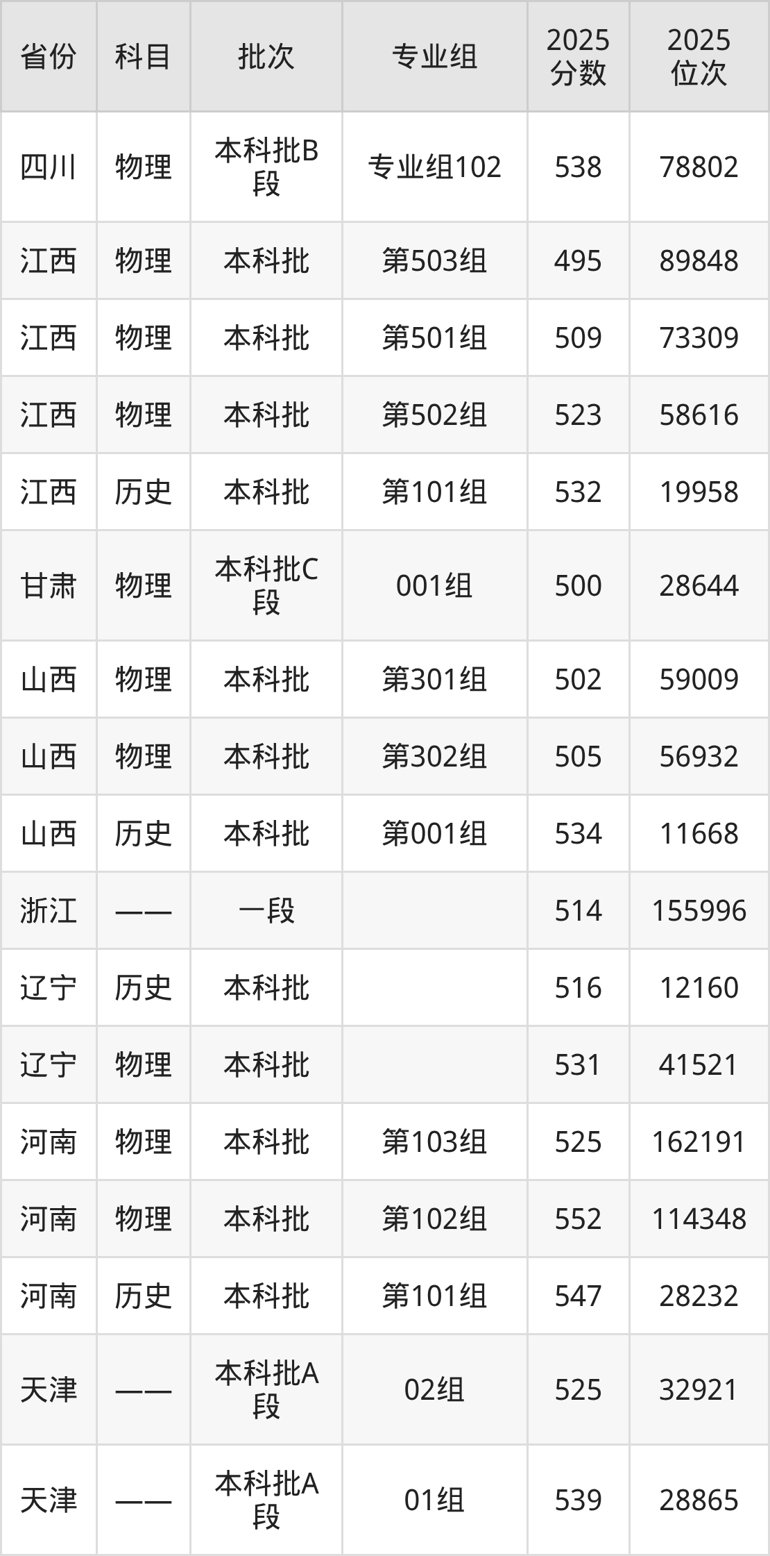 2025年投档录取最低分为515分,录取最低位次为14156名。