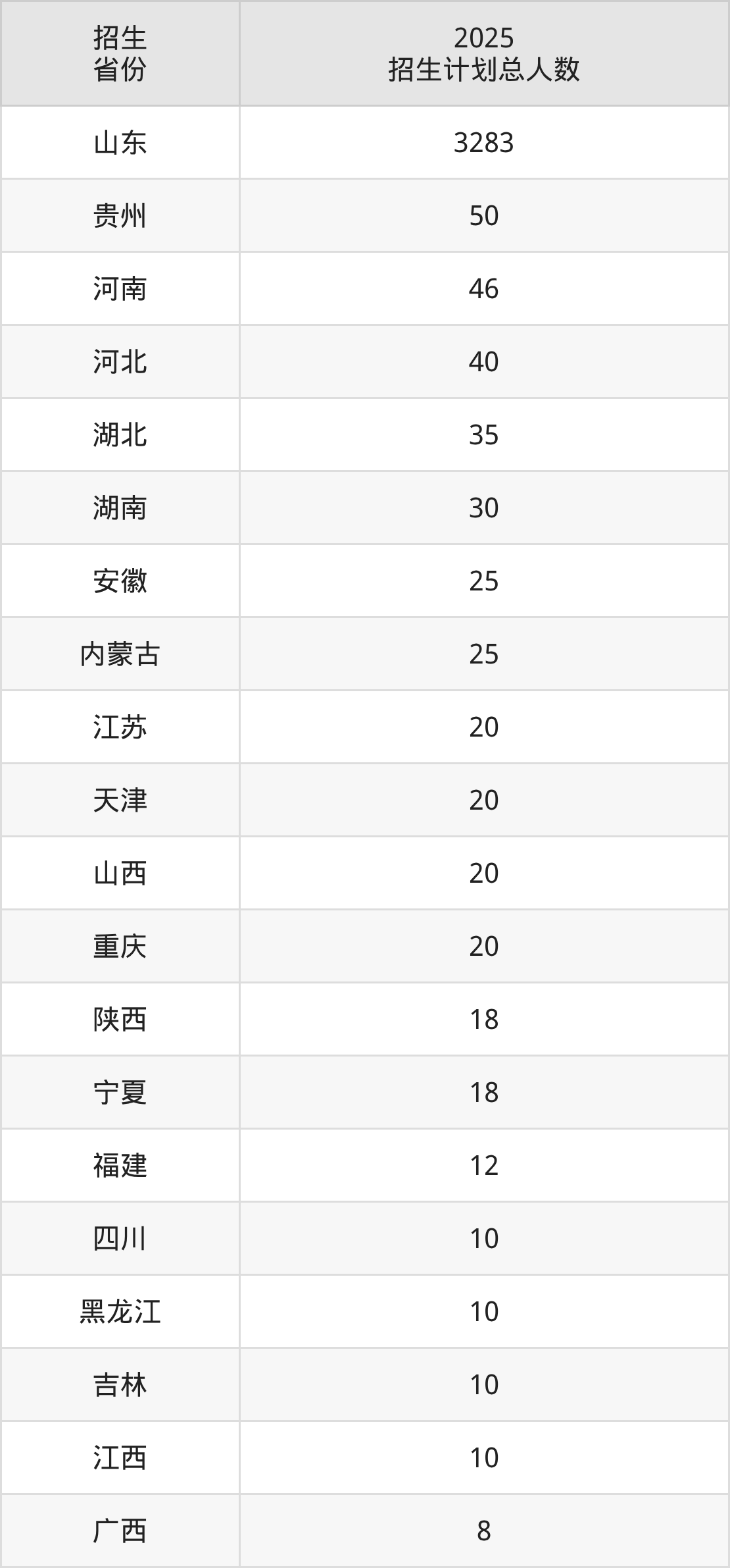 2025年山东航空学院面向全国29个省市开展本科招生;招生专业共45个,招生人数共3753人。2025年在山东省招生计划总人数是3283人,其中,山东航空学院在山东省招生人数最多的是化学工程与工艺。山东航空学院在各省具体招生人数情况如下表。