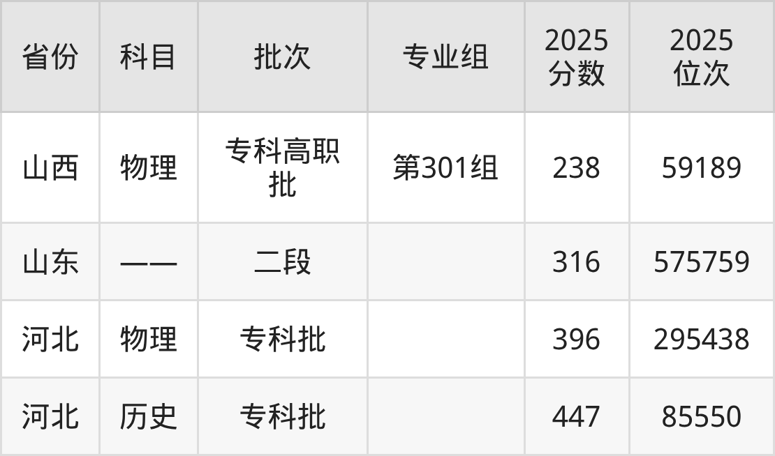 山东文化艺术职业学院2025招生录取分数线已公布,2025年山东文化艺术职业学院在山东省专科投档录取最低分316分。在河北省专科历史类投档录取最低分447分,更多省份具体录取分数线详见下文。