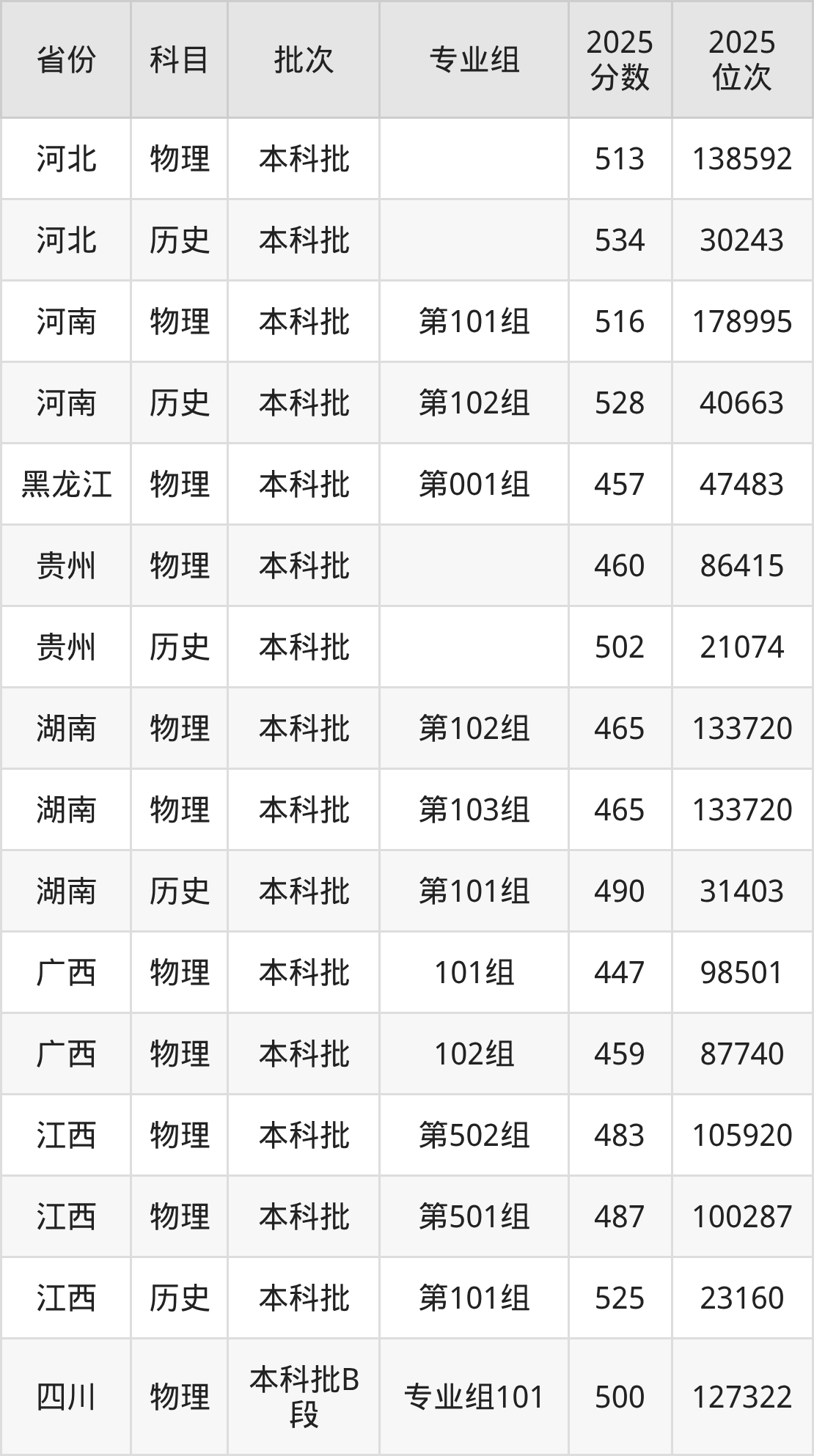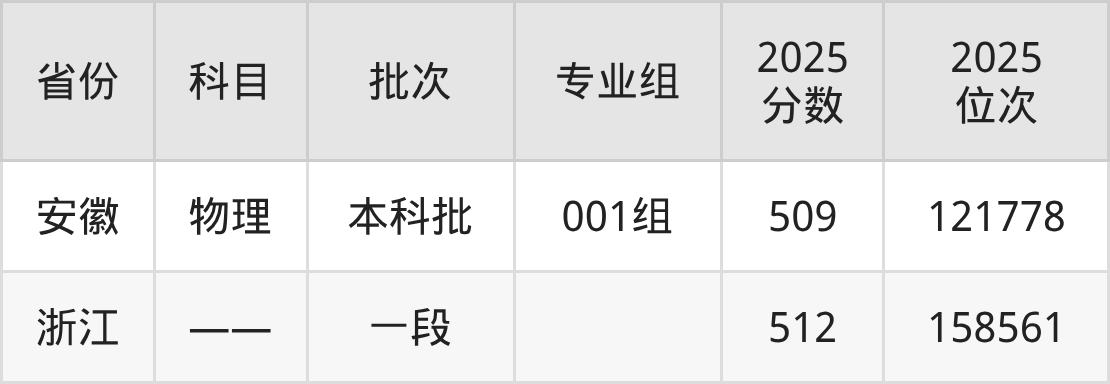2025年在本科物理类进行招生,各专业组分数线详情如下: