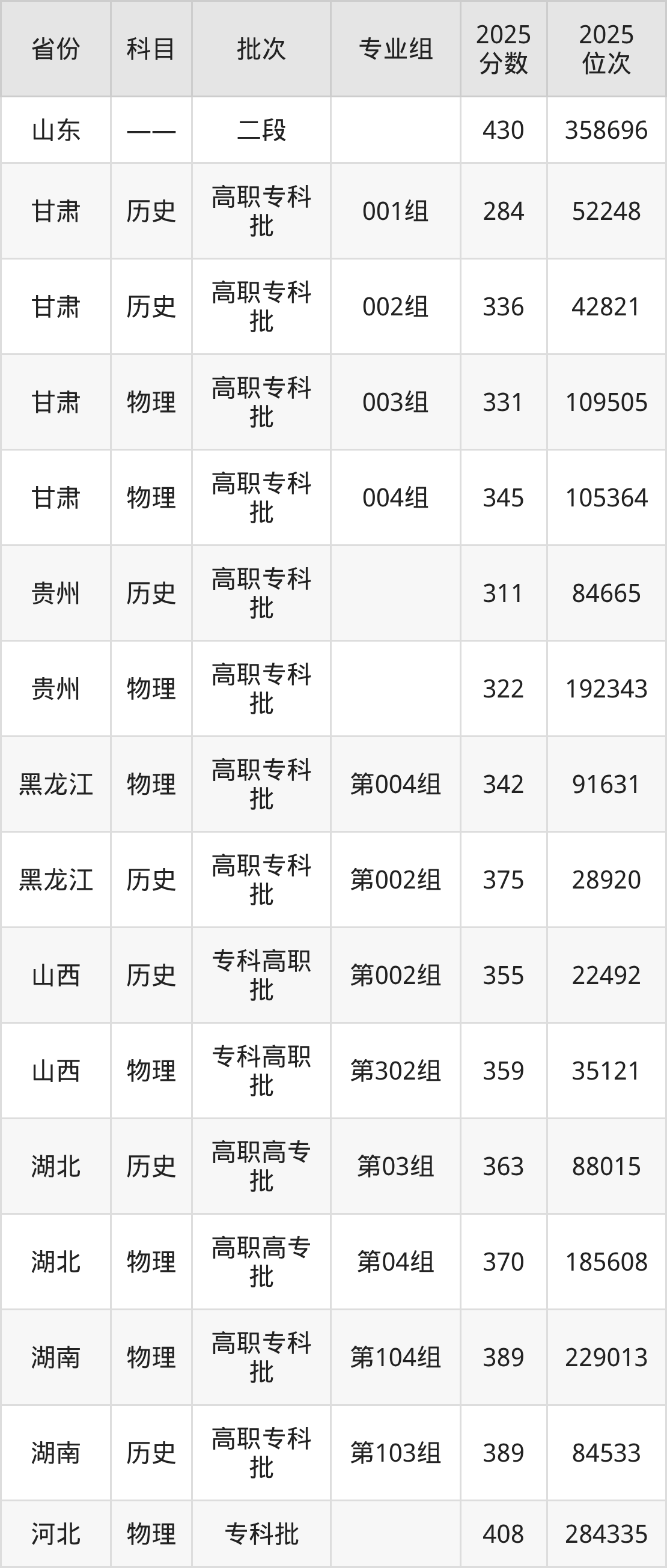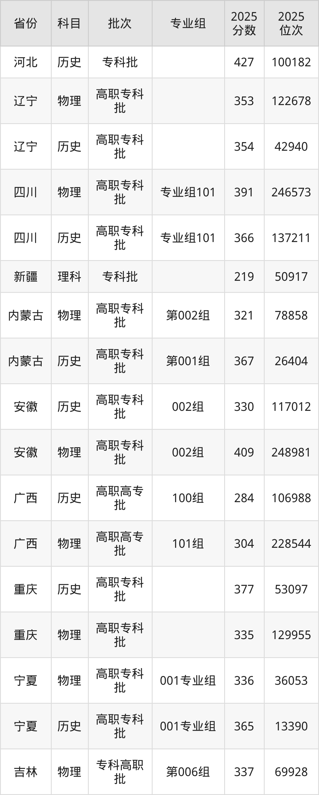 辽宁省交通高等专科学校001专业组:2025年投档录取最低分为365分,录取最低位次为13390名。