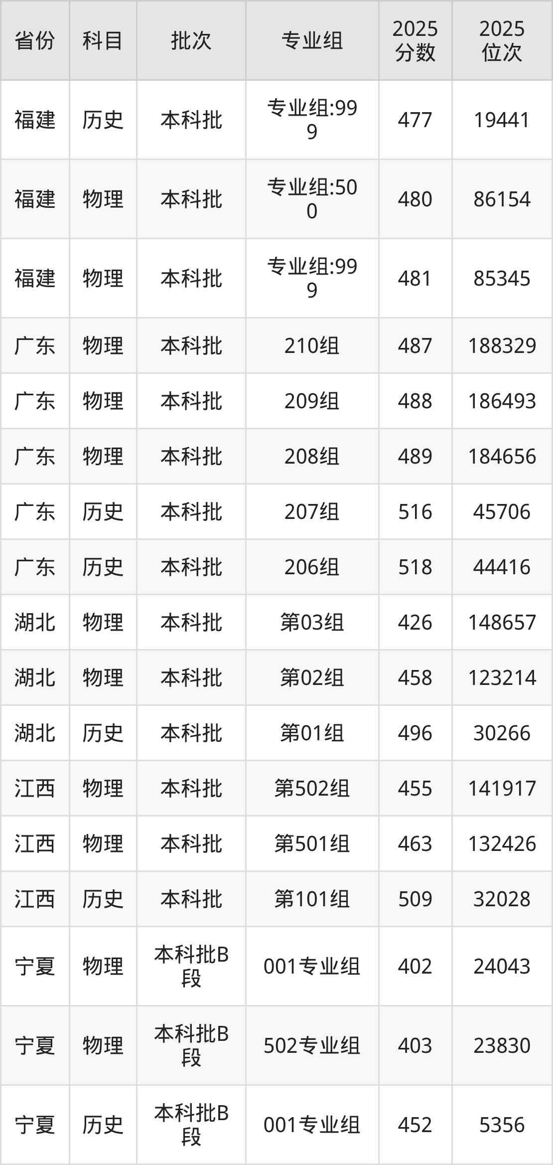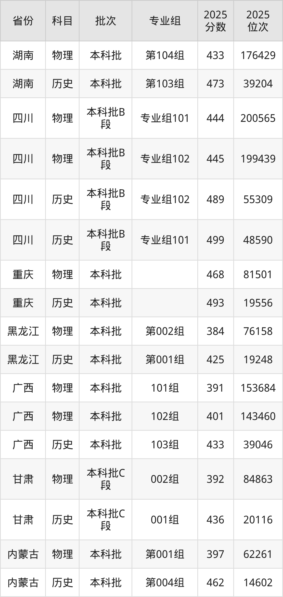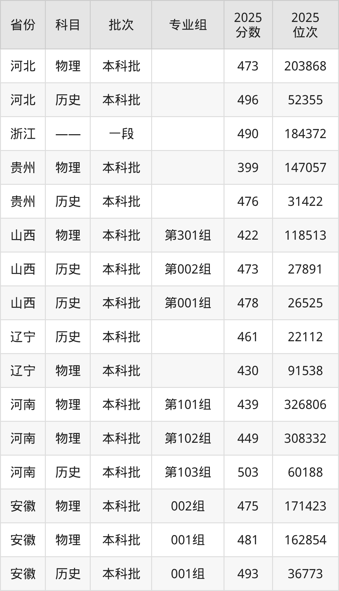 普通类本科物理类最低473分,本科历史类最低496分