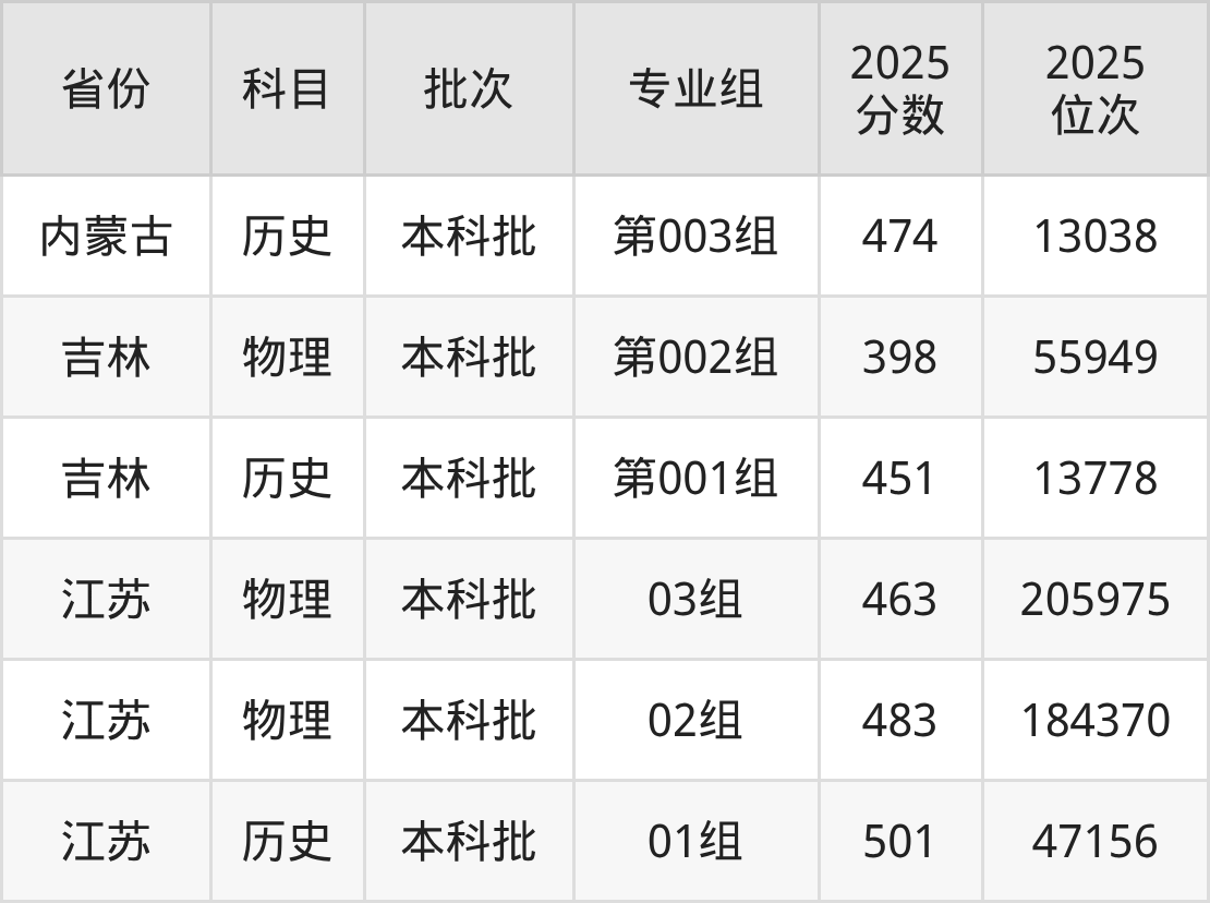 2025年投档录取最低分为473分,录取最低位次为203868名。
