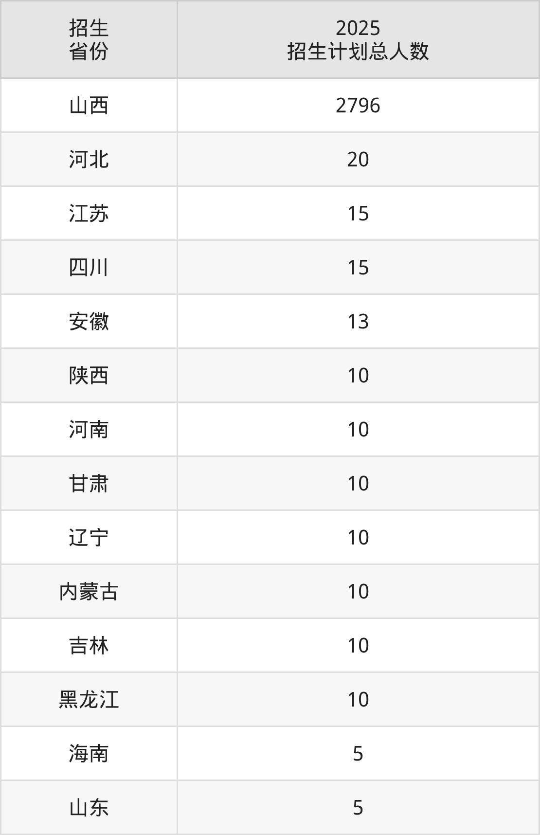 2025年山西职业技术学院面向全国14个省市开展专科招生;招生专业共41个,招生人数共2939人。2025年在山西省招生计划总人数是2796人,其中,山西职业技术学院在山西省招生人数最多的是电气自动化技术。山西职业技术学院在各省具体招生人数情况如下表。