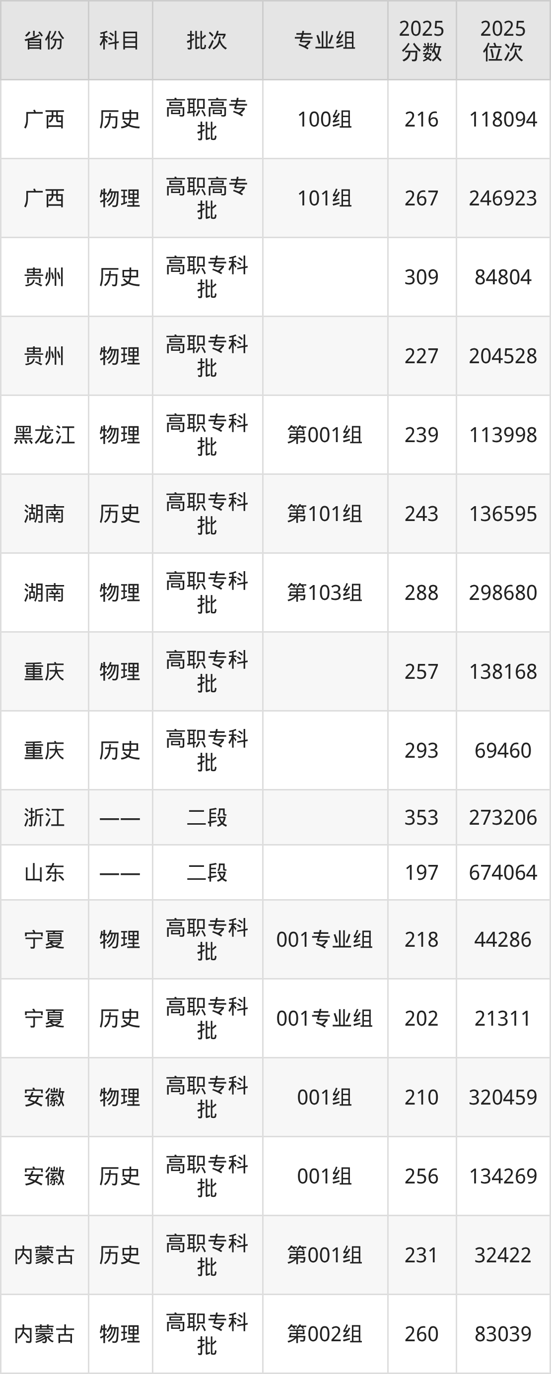 下面是2025年重庆信息技术职业学院全国录取分数线一览表,请查阅。