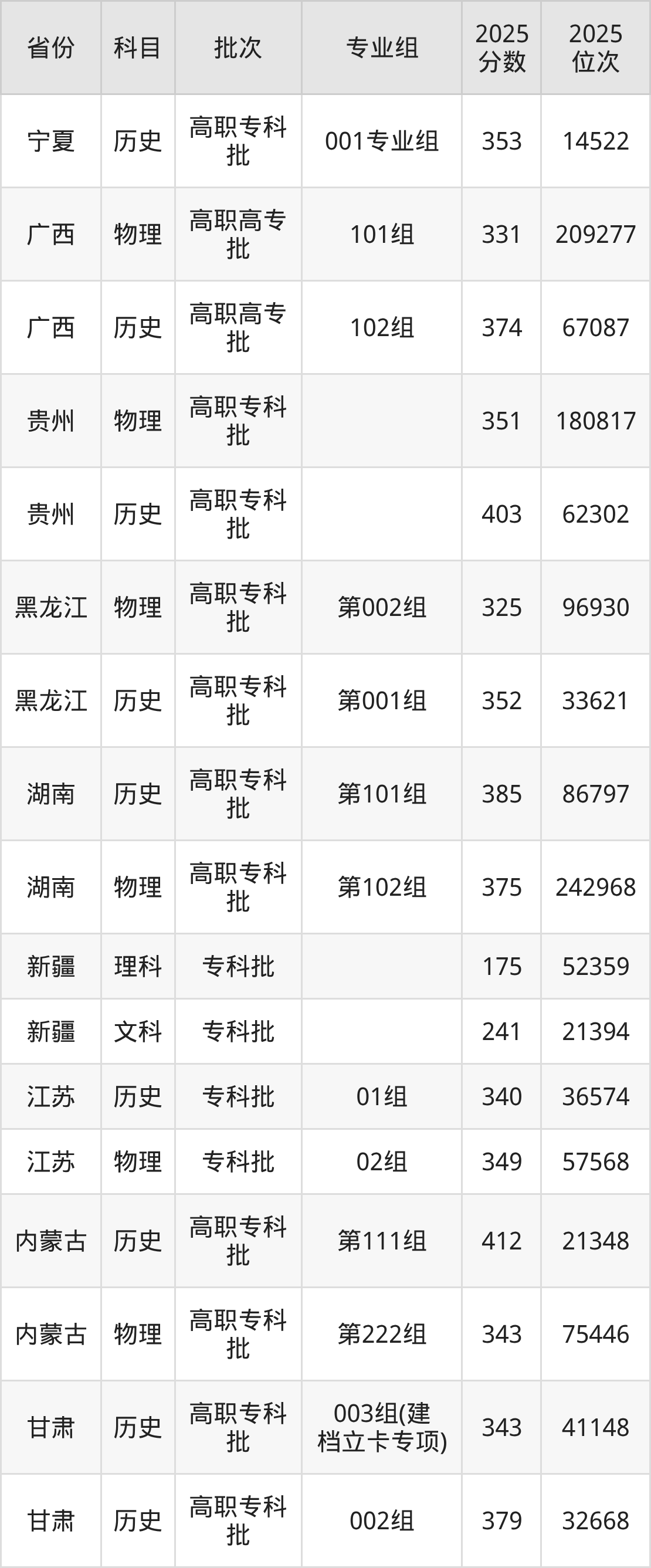 下面是2025年甘肃交通职业技术学院全国录取分数线一览表,请查阅。