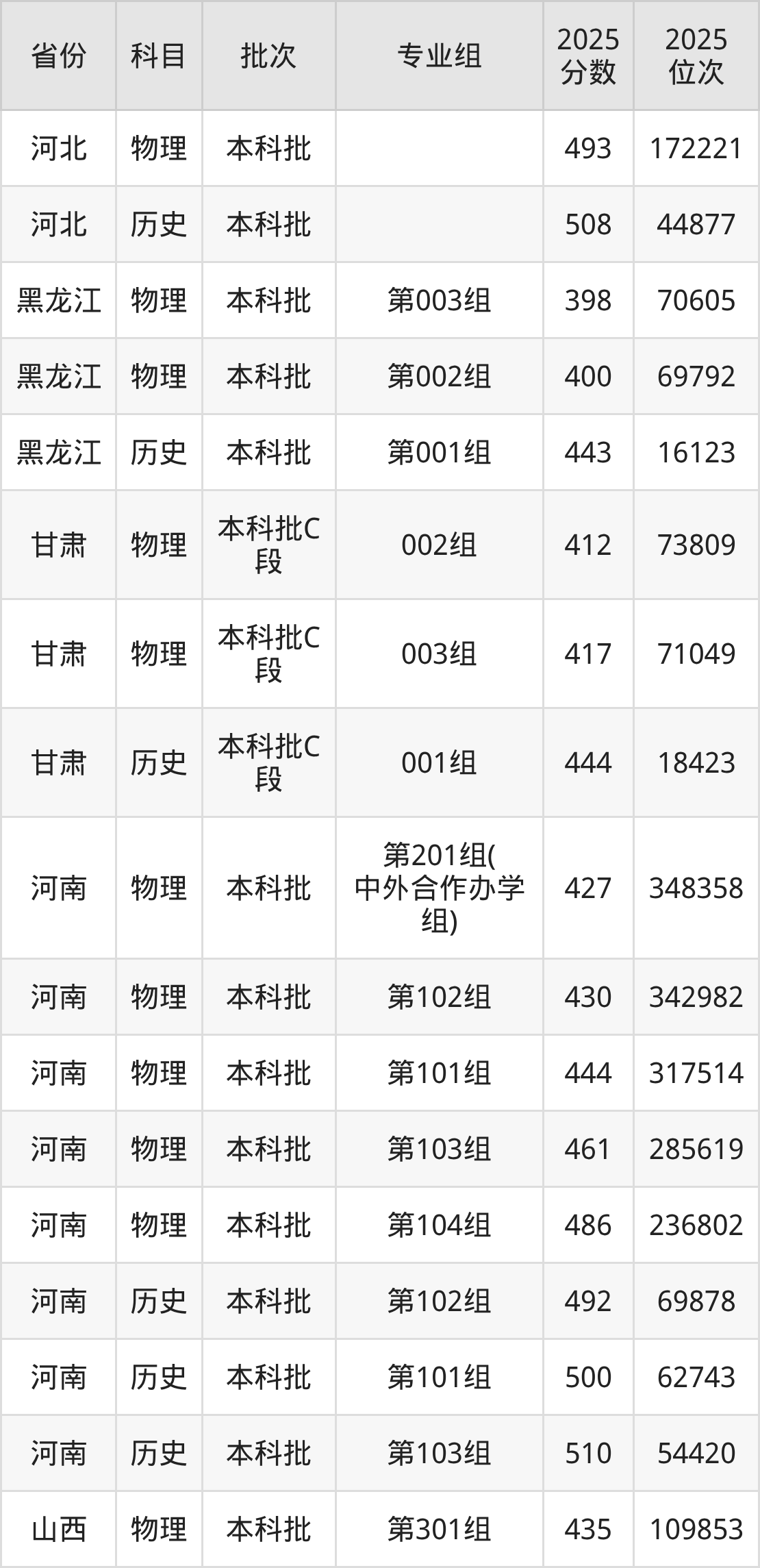 郑州商学院第501组:2025年投档录取最低分为459分,录取最低位次为137108名。
