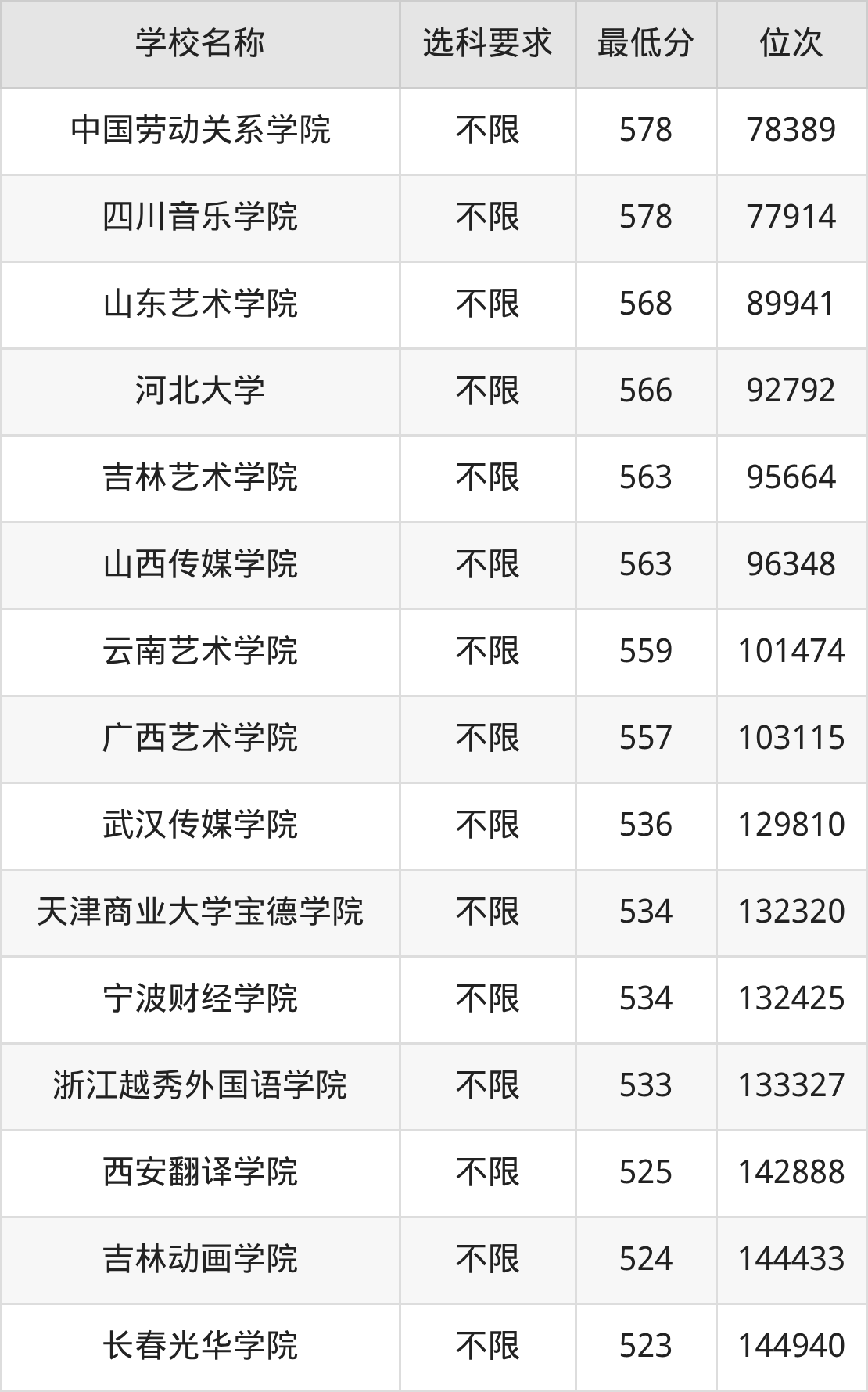 在重庆招生的院校中,有21所不限选科要求(历史组),如武汉大学、中国传媒大学等;有5所不限选科要求(物理组),如浙江传媒学院、山西传媒学院等。