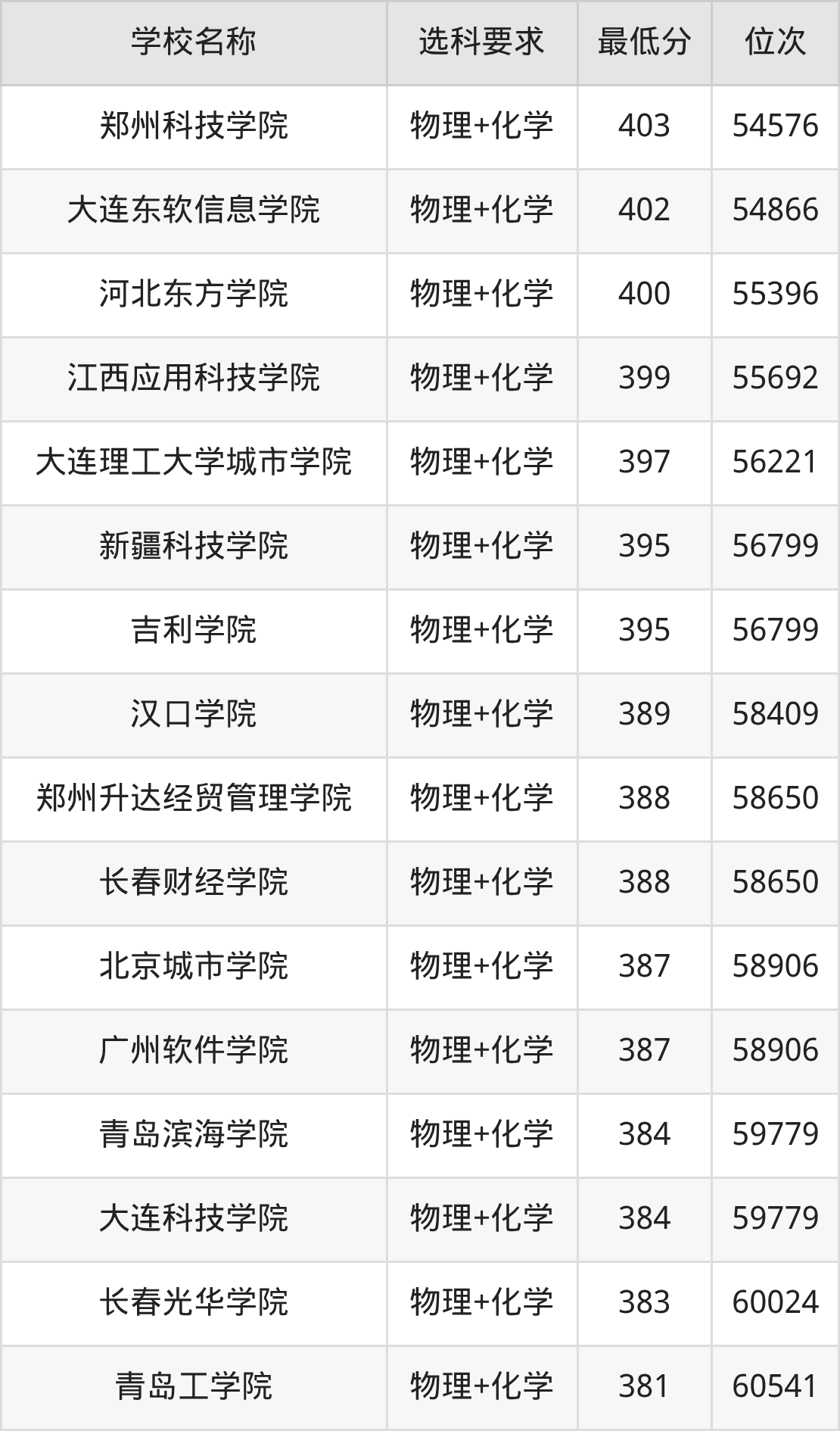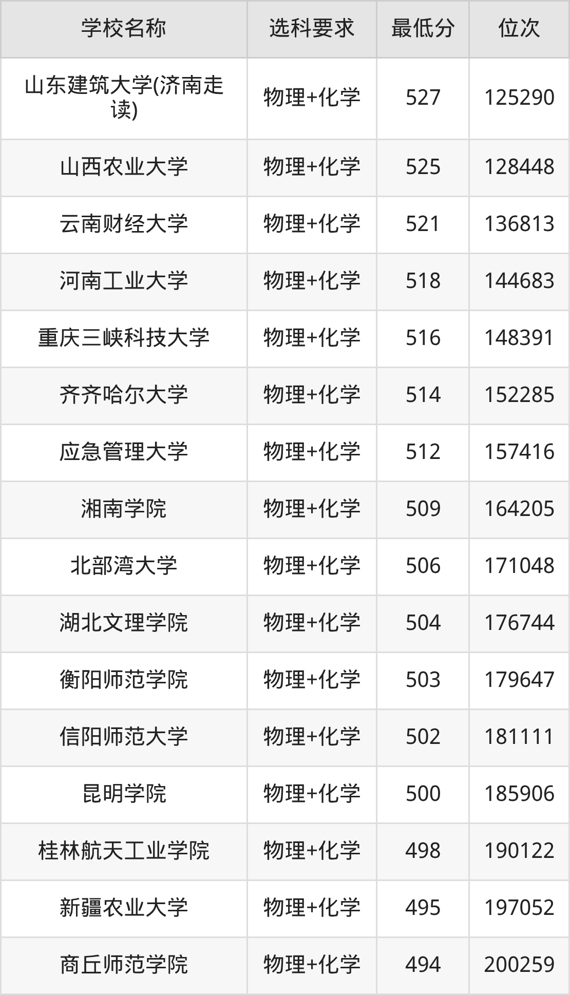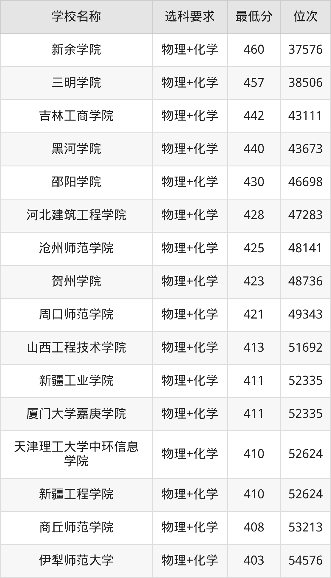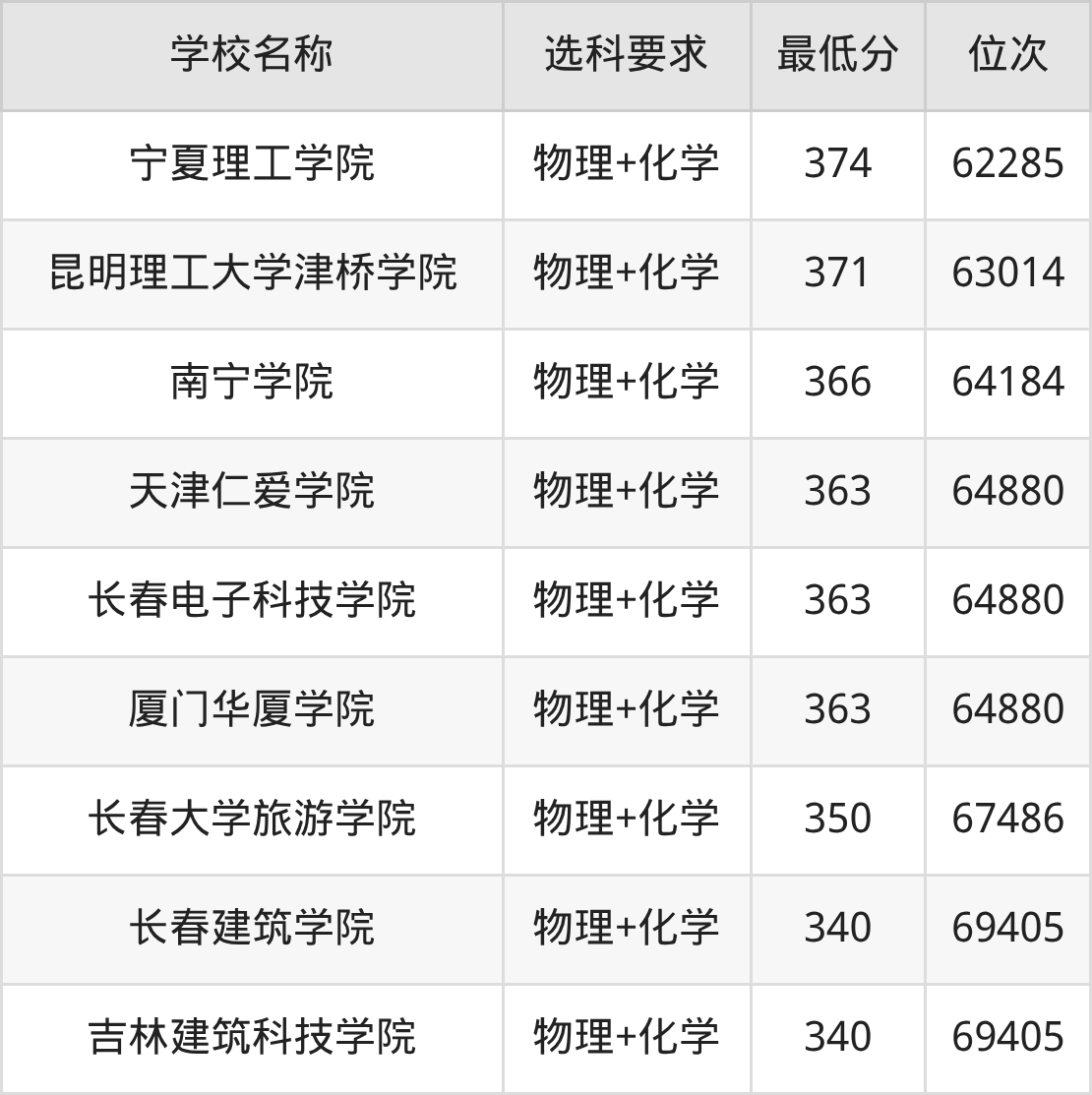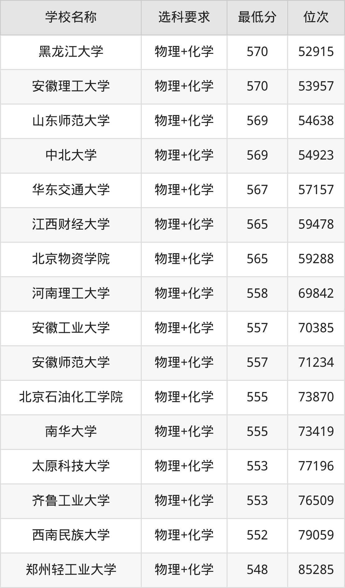 在吉林招生的院校中,有73所要求考生必选“物理+化学”,如吉林大学、北京邮电大学等。