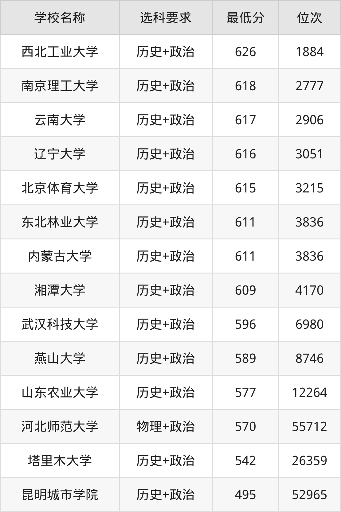 河北数据显示,2025年收分最低、最容易考的马克思主义理论院校是昆明城市学院(495分)、塔里木大学(542分),而收分最高、最难考的马克思主义理论院校是西北工业大学(626分)、南京理工大学(618分)。
