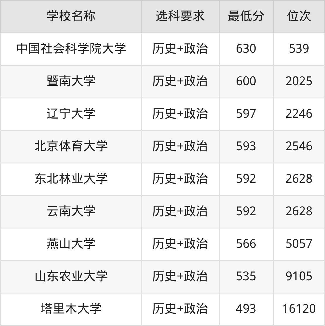 在辽宁招生的院校中,有9所要求考生必选“历史+政治”,如中国社会科学院大学、暨南大学等。