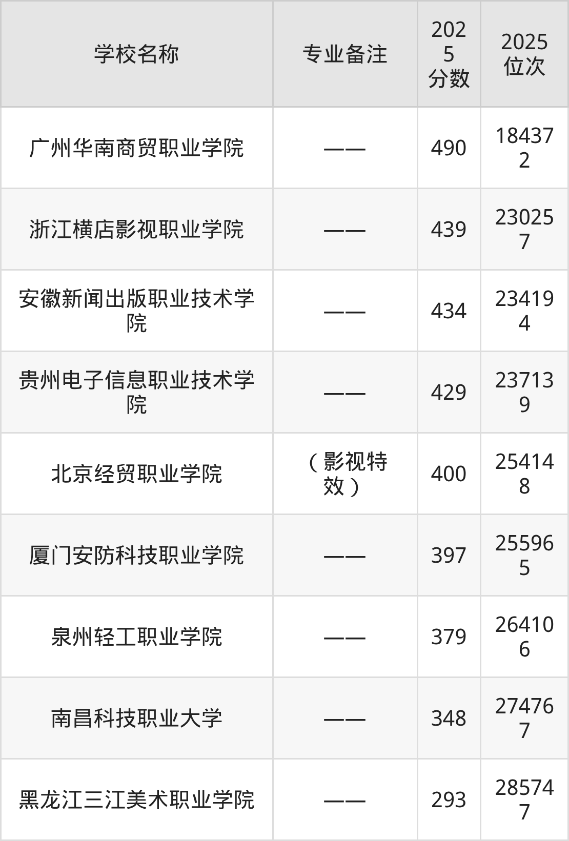 2025年影视动画大学全国排名: