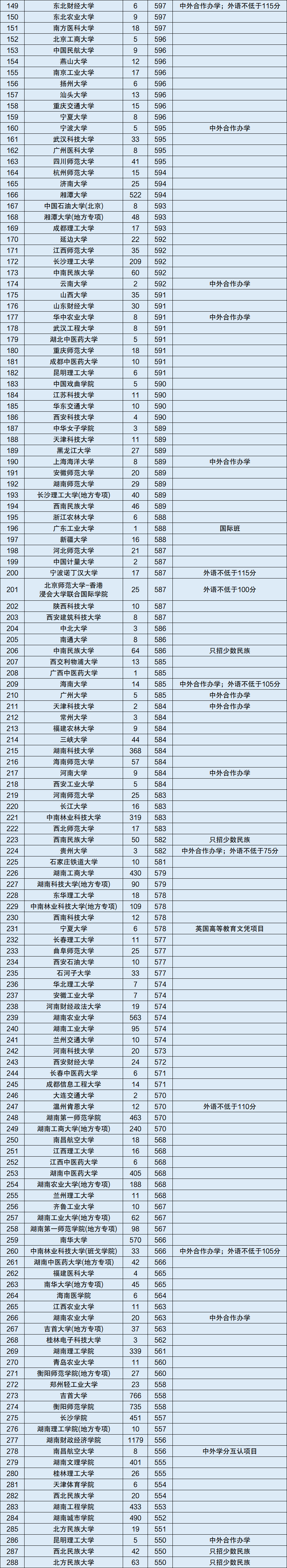 注:2020年湖南省文科一本线为550分。