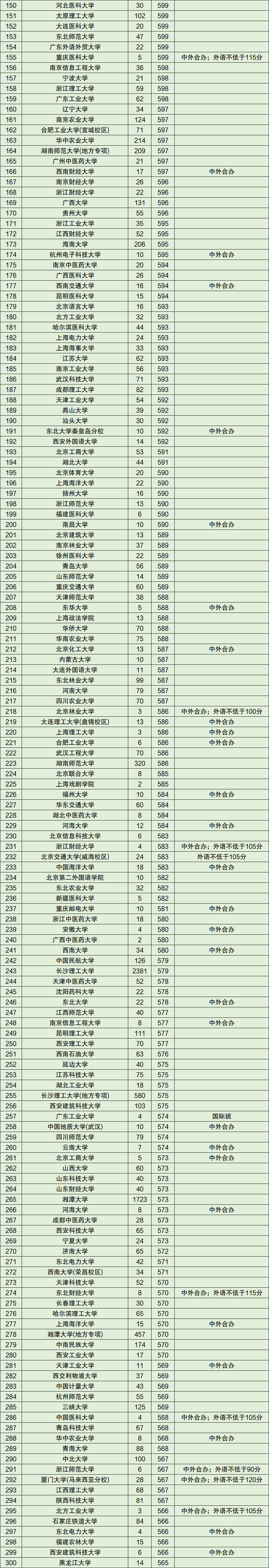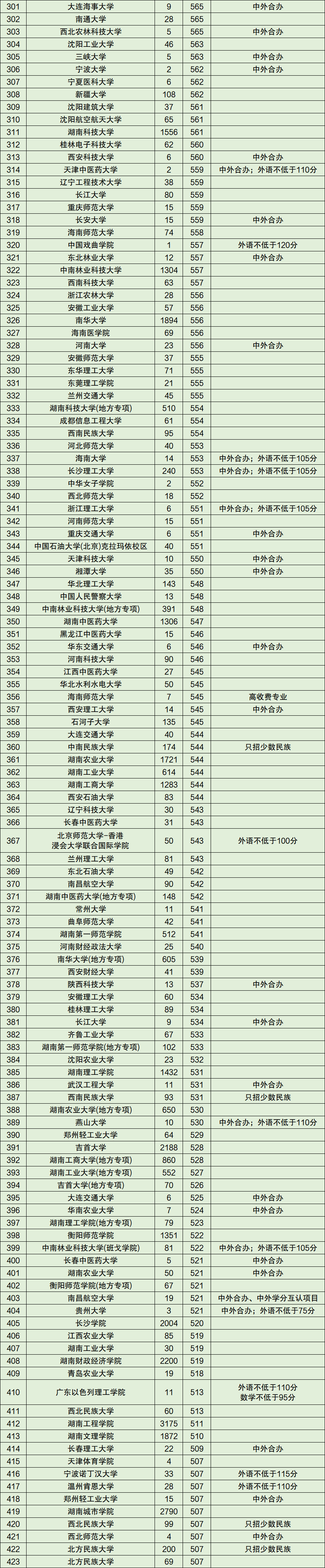 注:2020年湖南省理科一本线为507分。