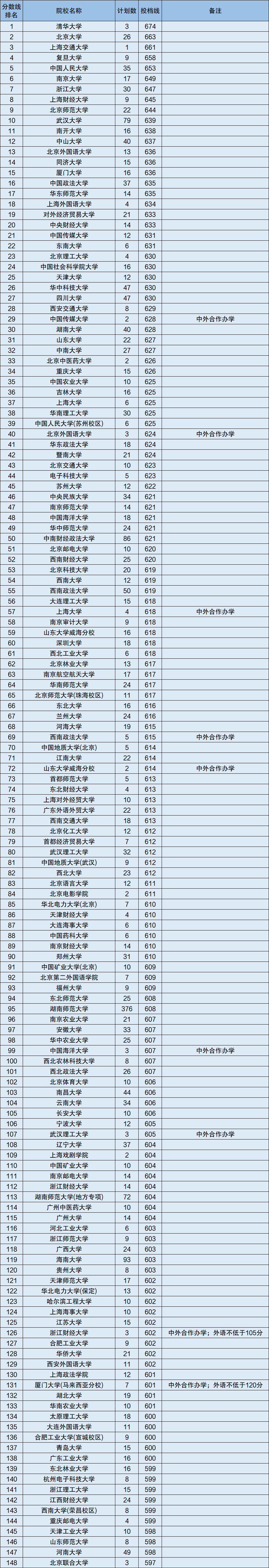 一、全国一本大学在湖南录取分数线排名 - 理工类