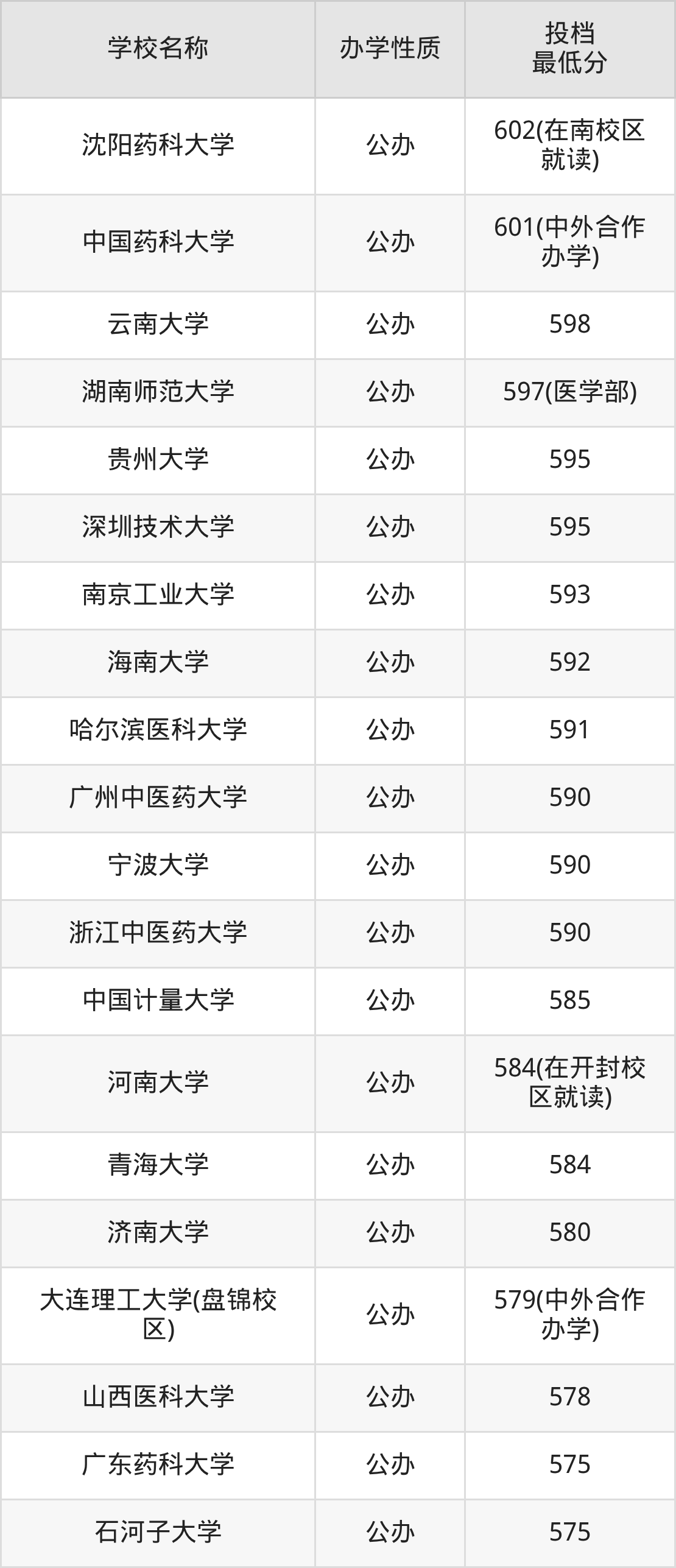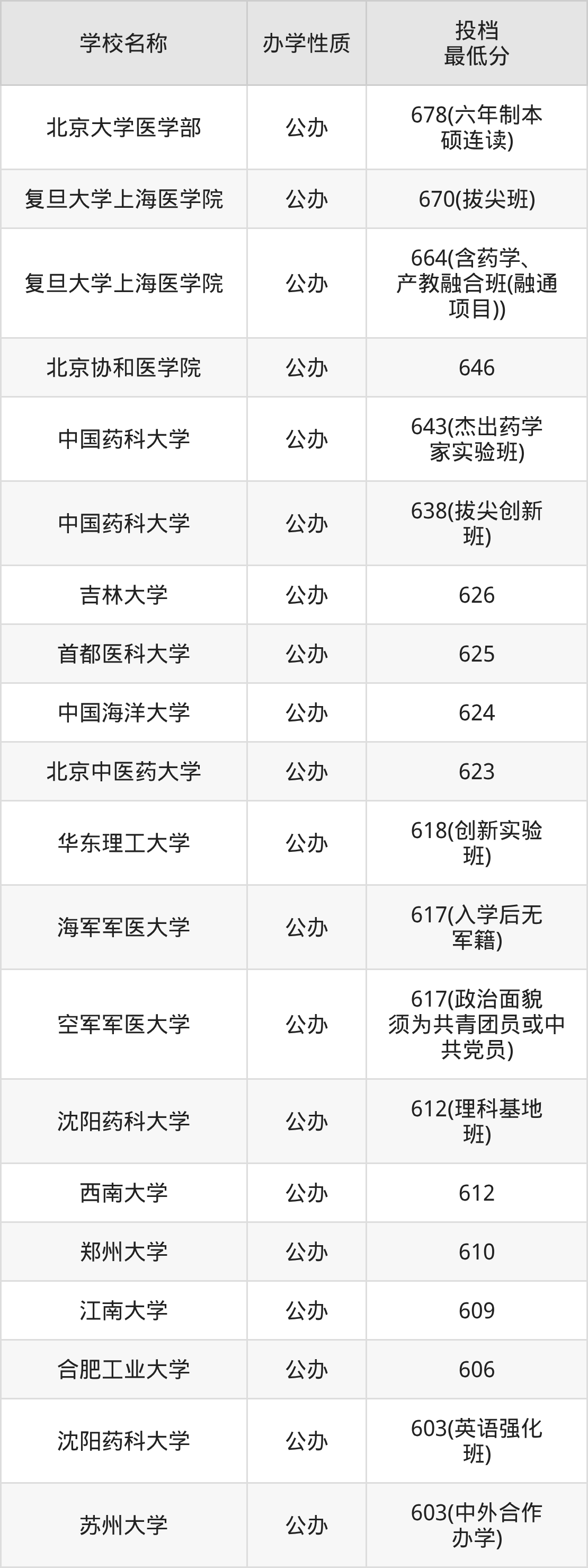 下面是2025年全国所有大学药学专业录取分数线一览表(按照分数线从高到低排名):