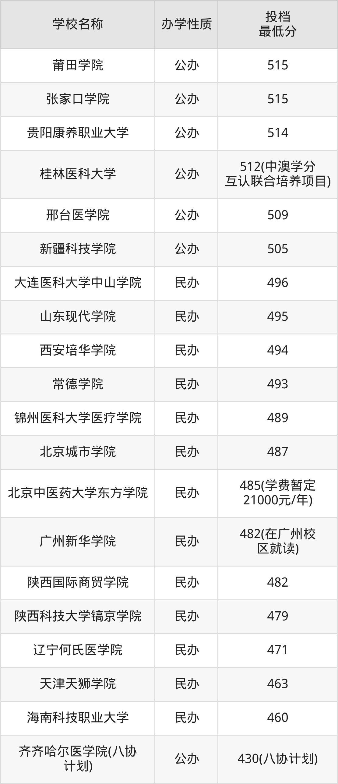 500分左右的药学大学:新疆科技学院505分、邢台医学院509分;