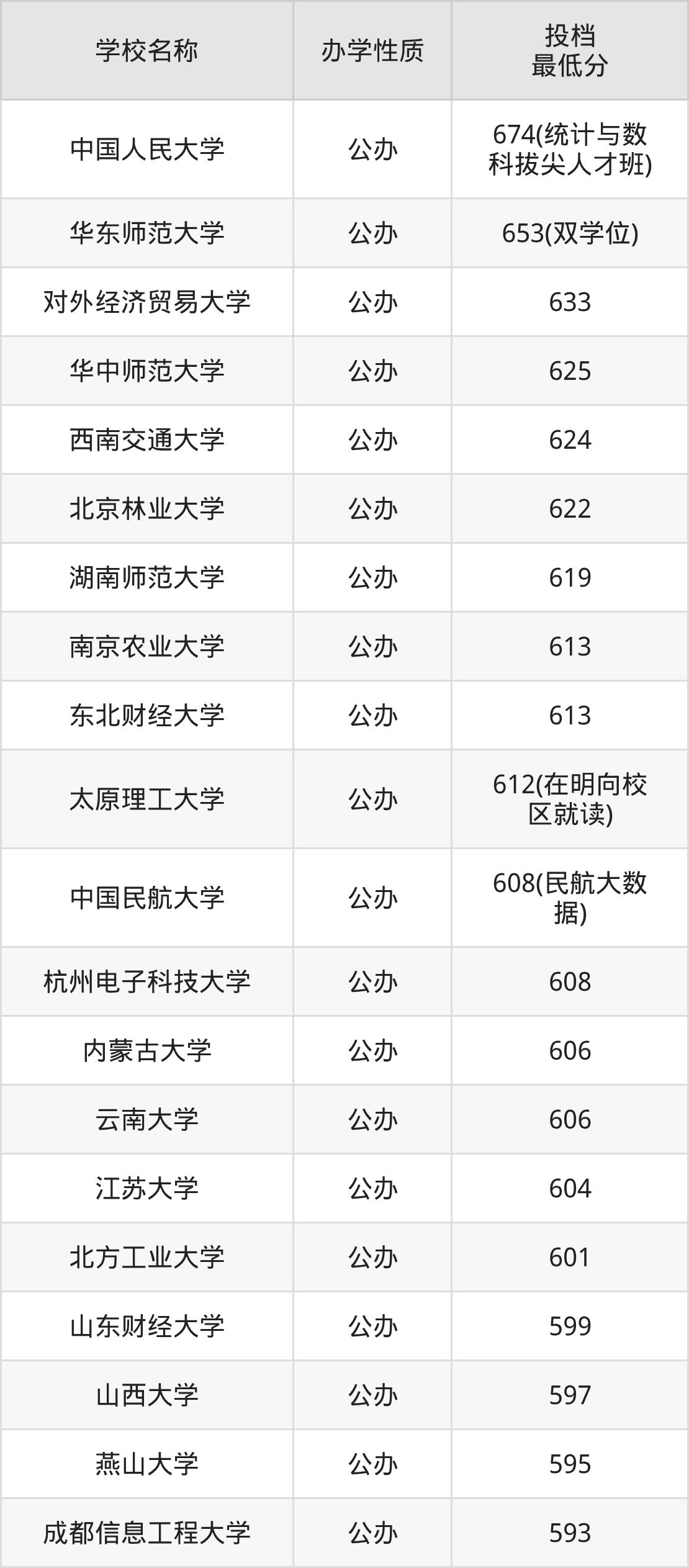 下面是2025年全国所有大学统计学专业录取分数线一览表(按照分数线从高到低排名):