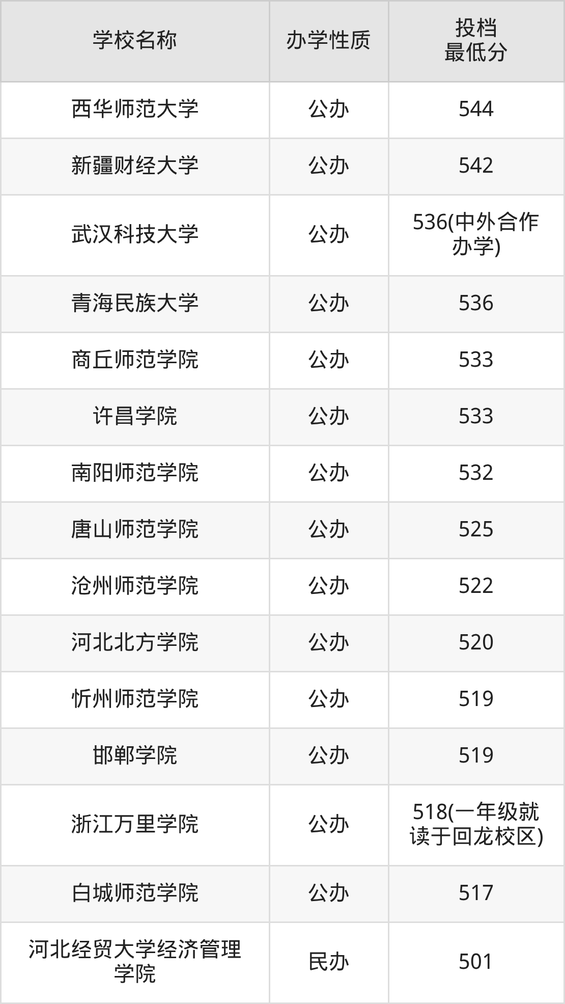 500分左右的统计学大学:河北经贸大学经济管理学院501分;